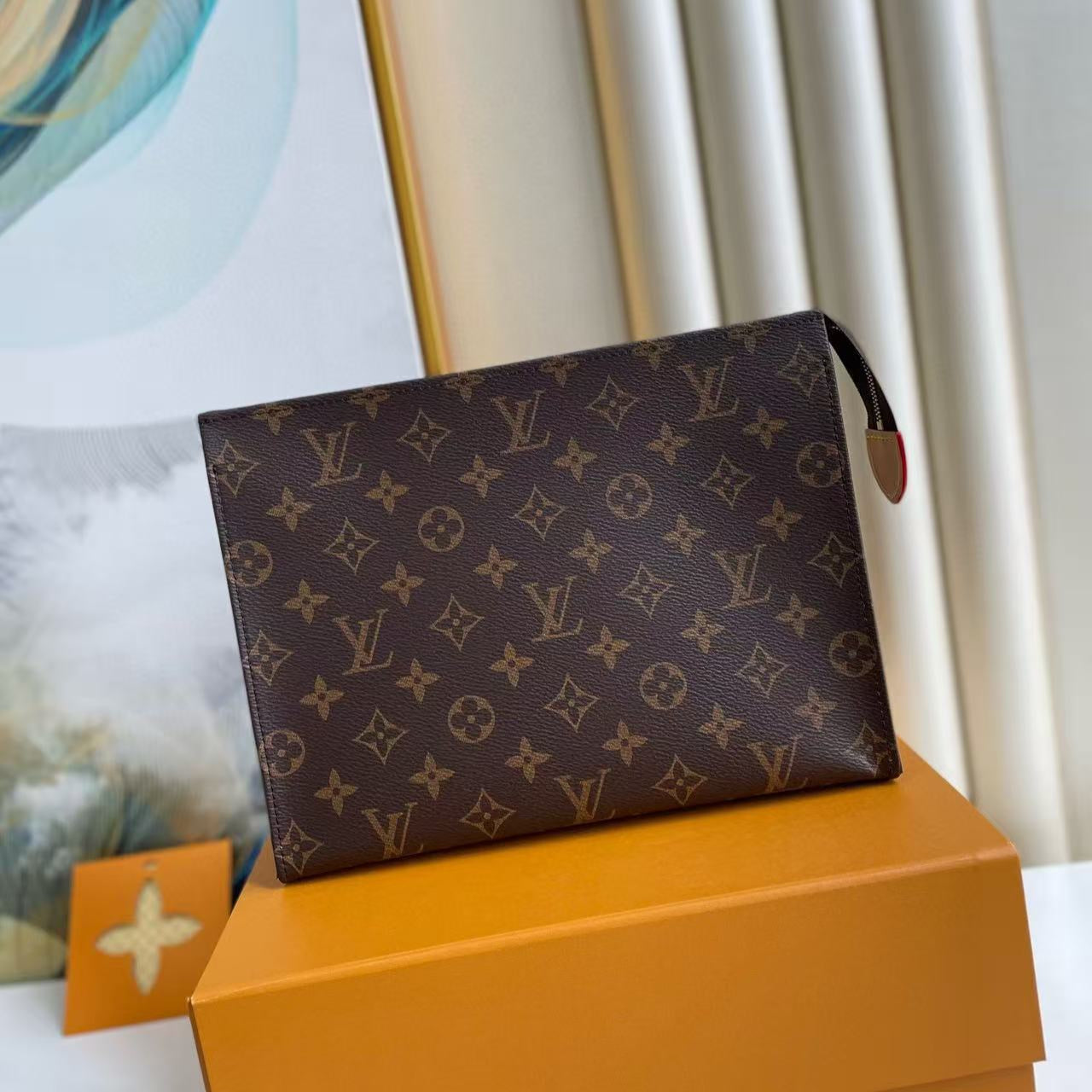 LV Toiletry Clutch 26cm Brown Monogram Canvas Leather