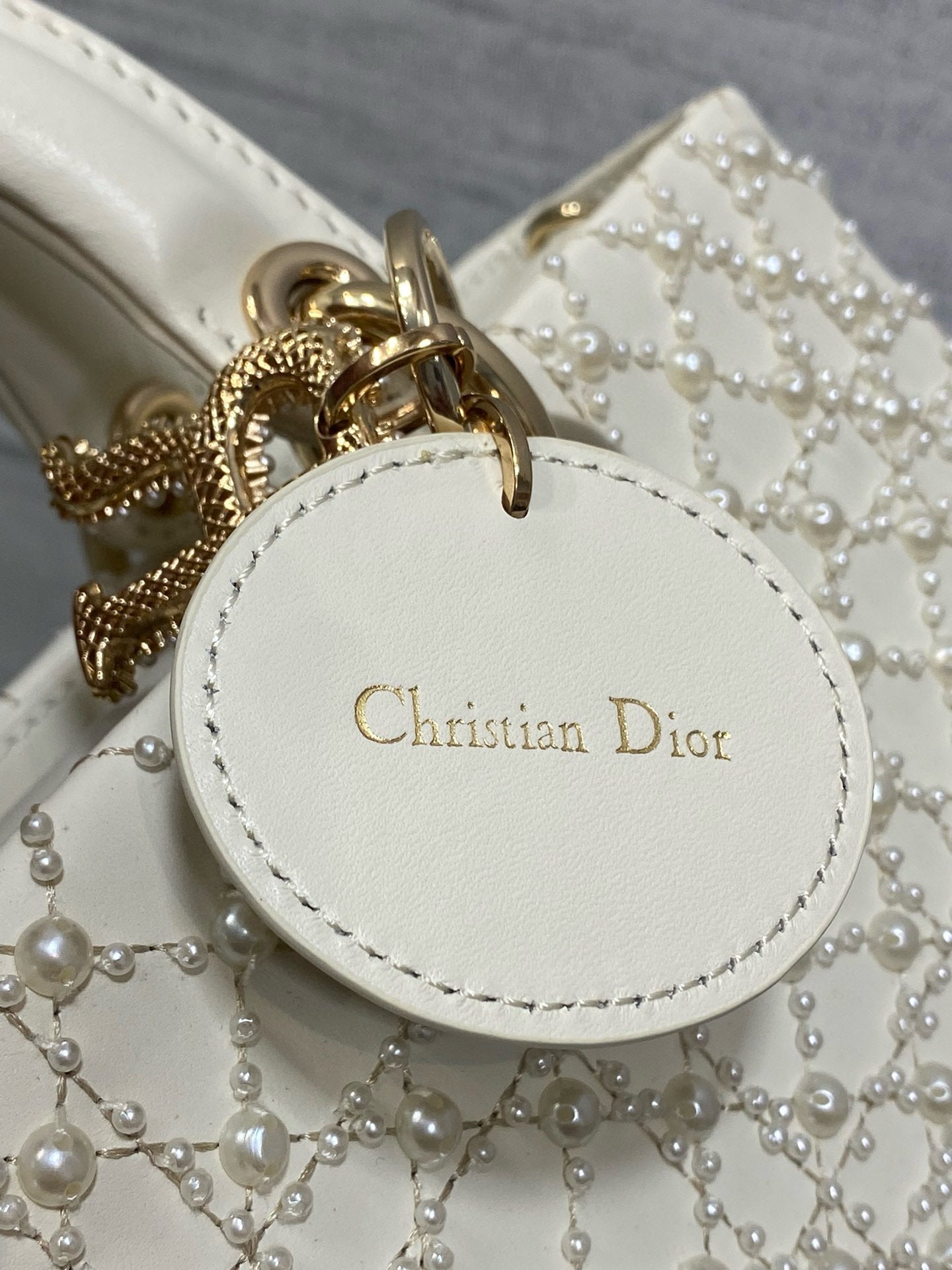 MEDIUM LADY D-JOY 26 WHITE LATTE CALFSKIN PEARL
