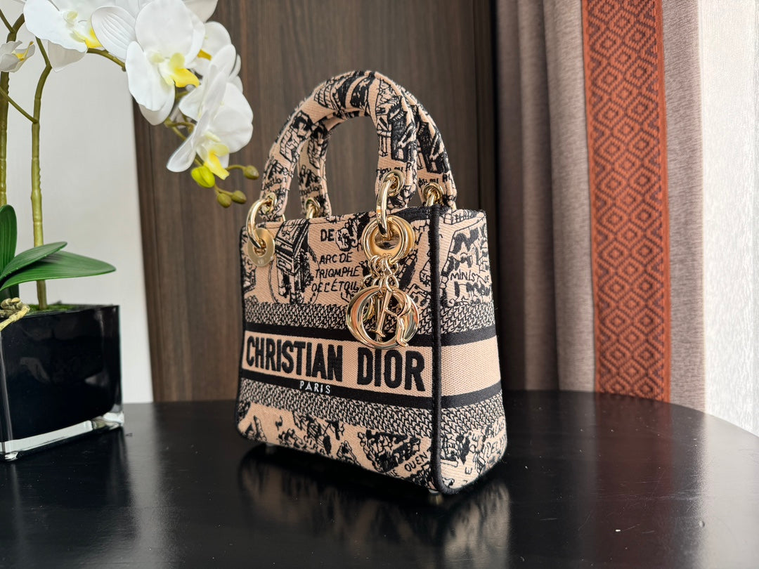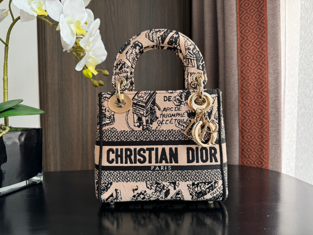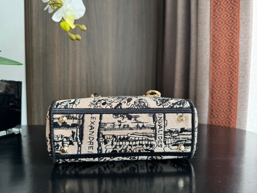 mini 17cm black pink embroidery canvas