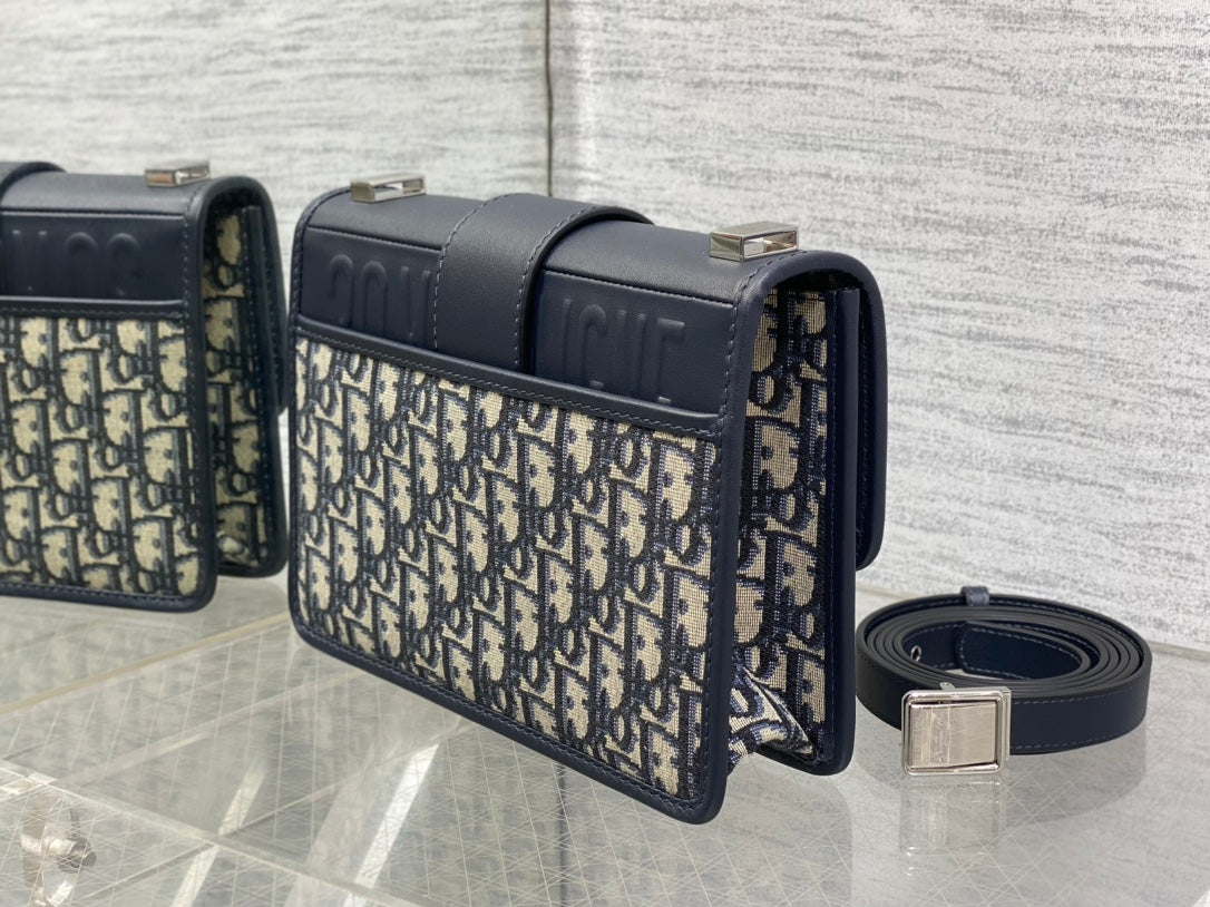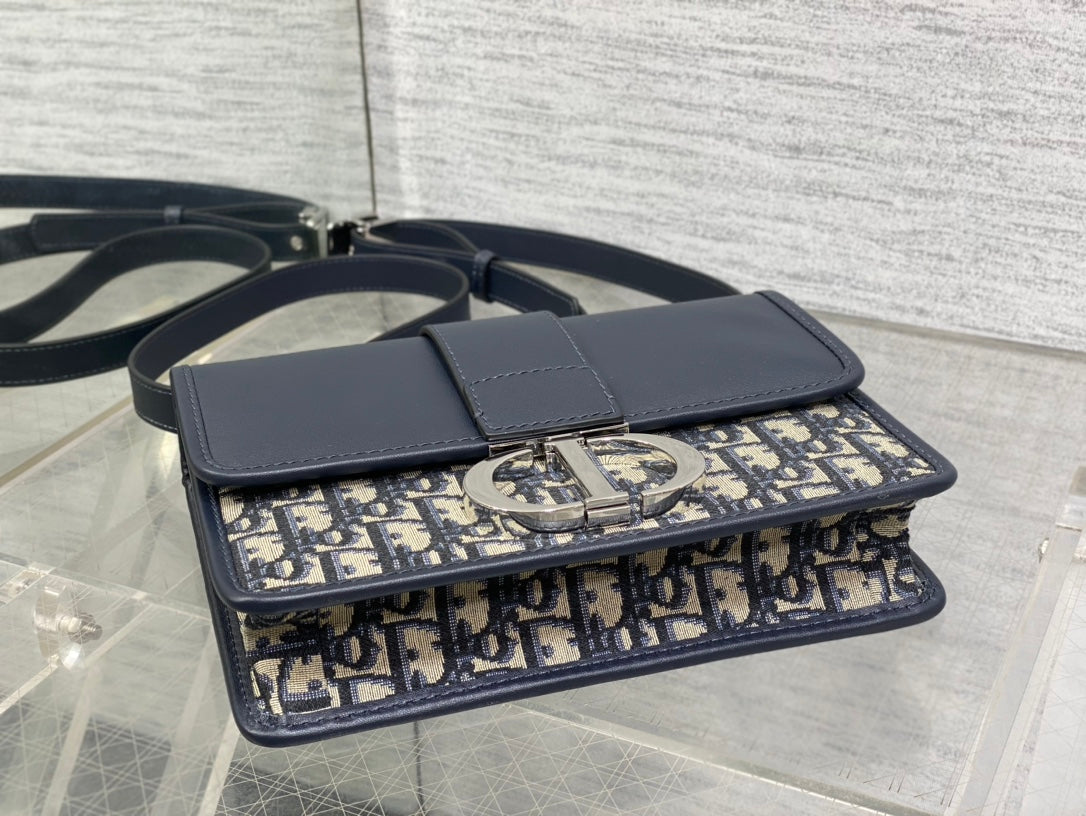 MONTAIGNE EAST-WEST 24 BAG WITH CHAIN IN NAVY BLUE LAMBSKIN AND MONOGRAM JACQUARD