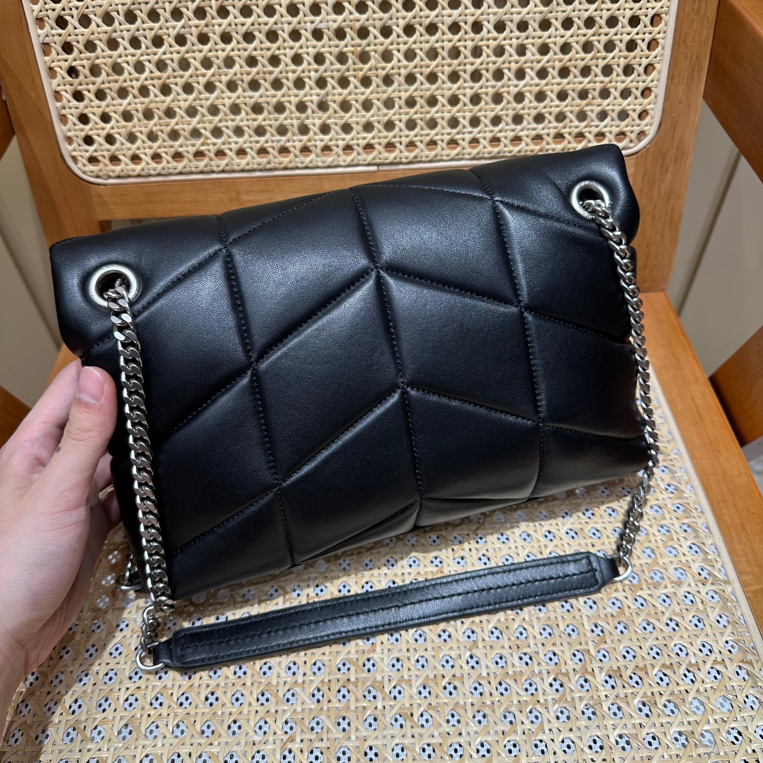 YSL Loulou Puffer Quilted Bag Black Silver Lambskin 338827