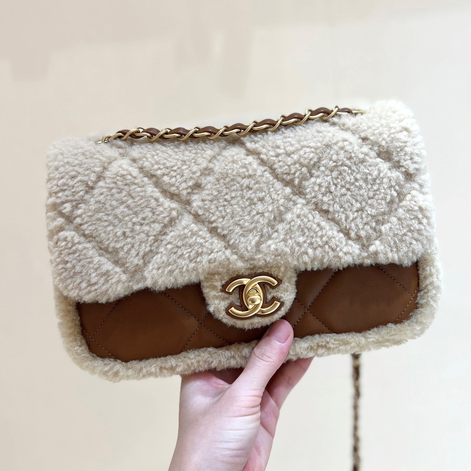 CC 24K Teddy Bear CF 23.5cm Brown Beige Lambskin & Fur Light GHW