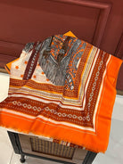 Selle De Dignitaire Bandana Shawl 200 CM In Orange Red Colorful Cashmere 265333