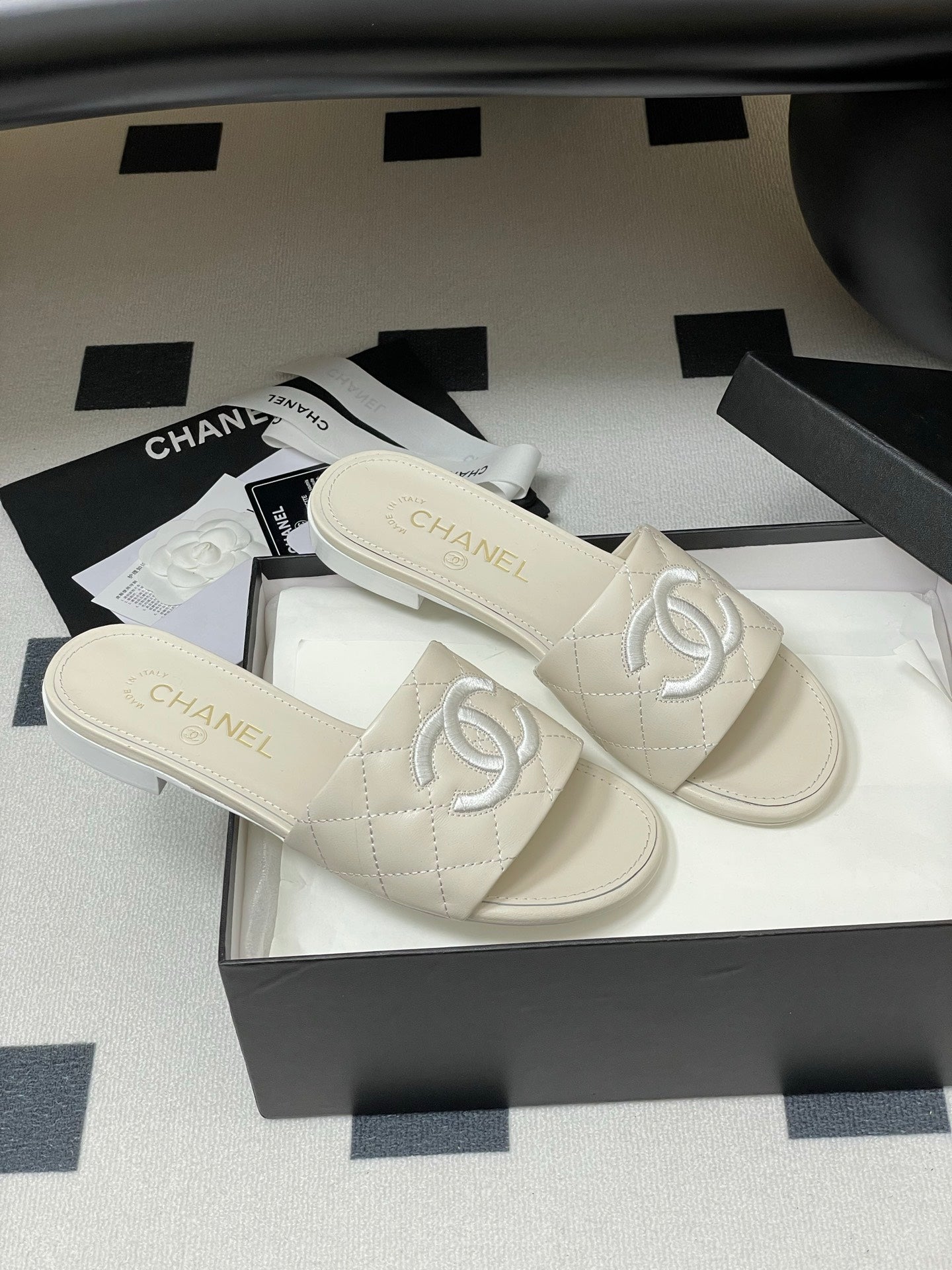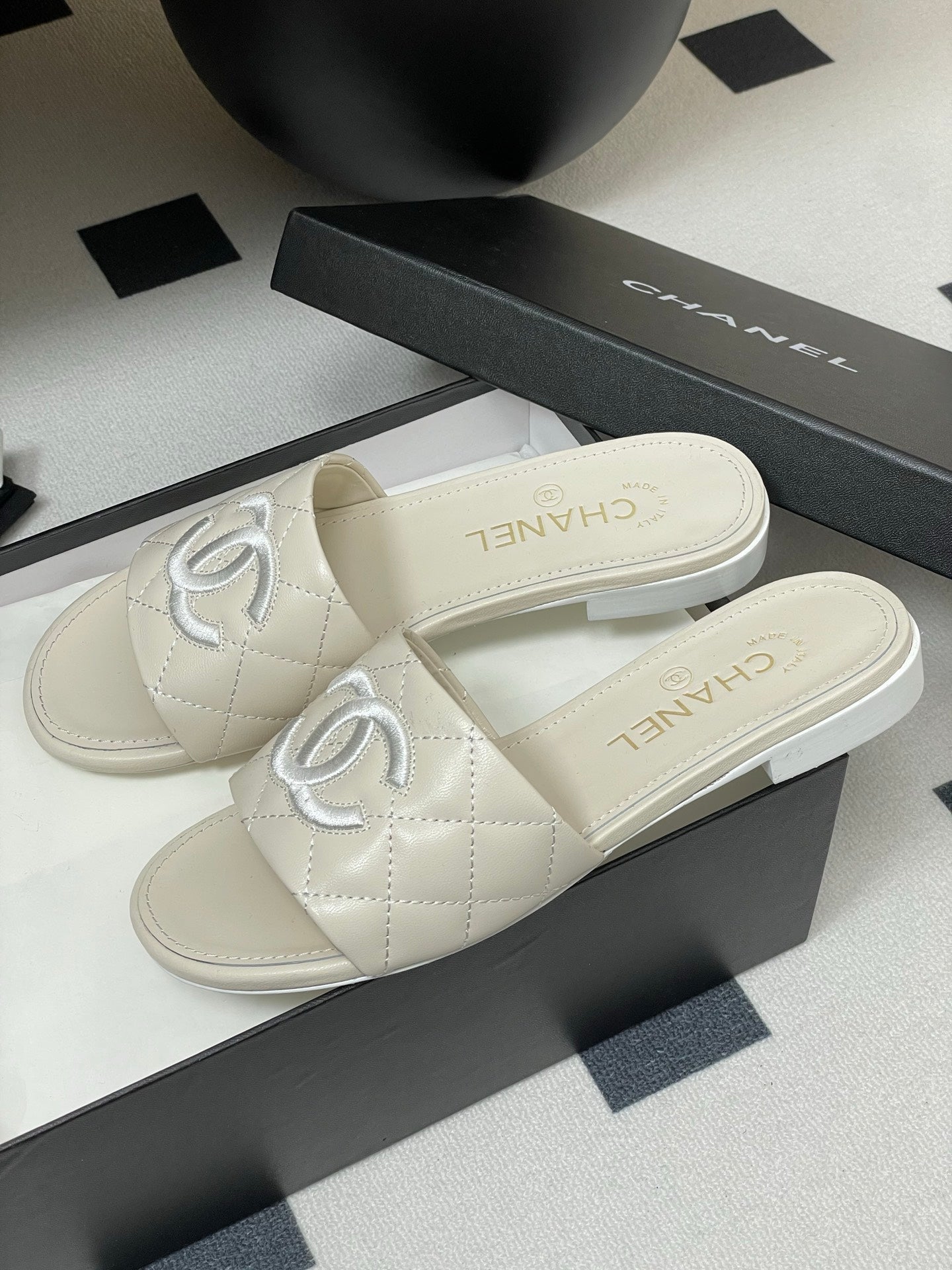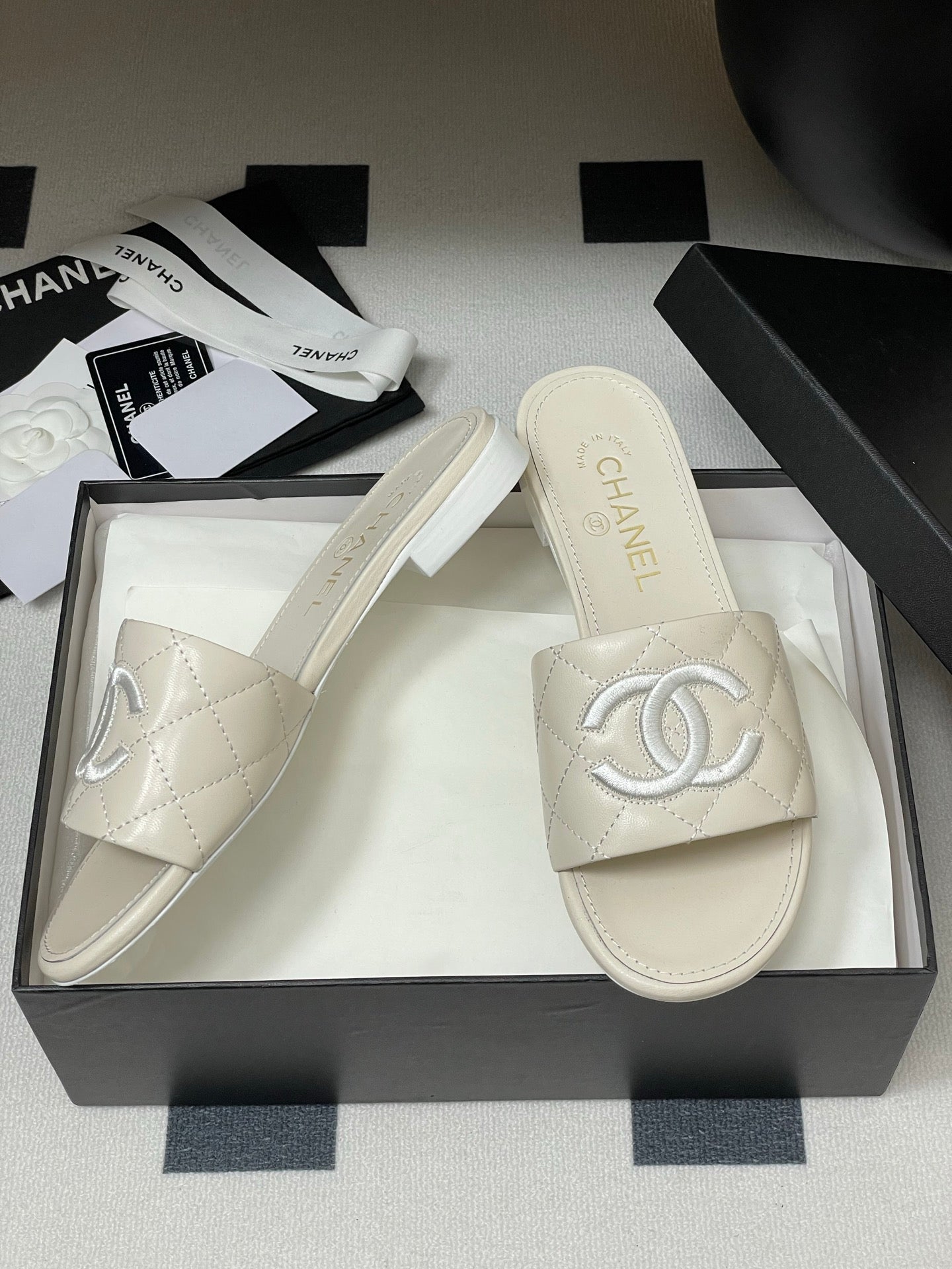25S Embroidery Double C Mule 15mm White Lambskin 247583