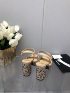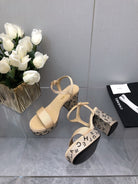 BLOCK HEEL WITH CRYSTAL 9 CM SANDAL IN SAND BROWN FABRIC