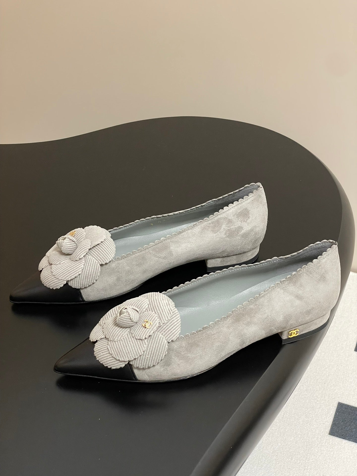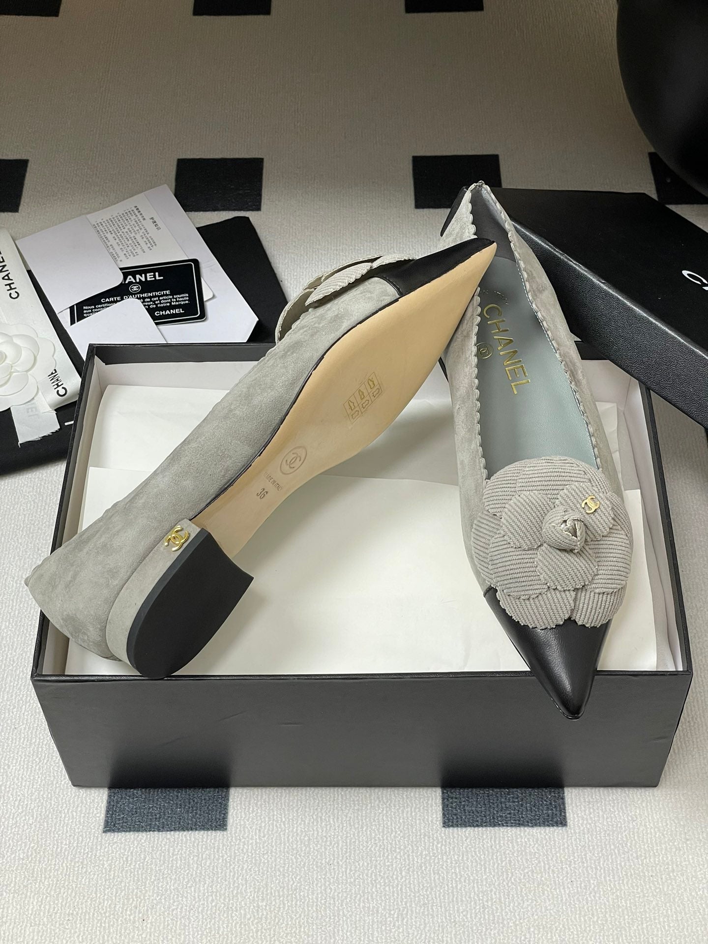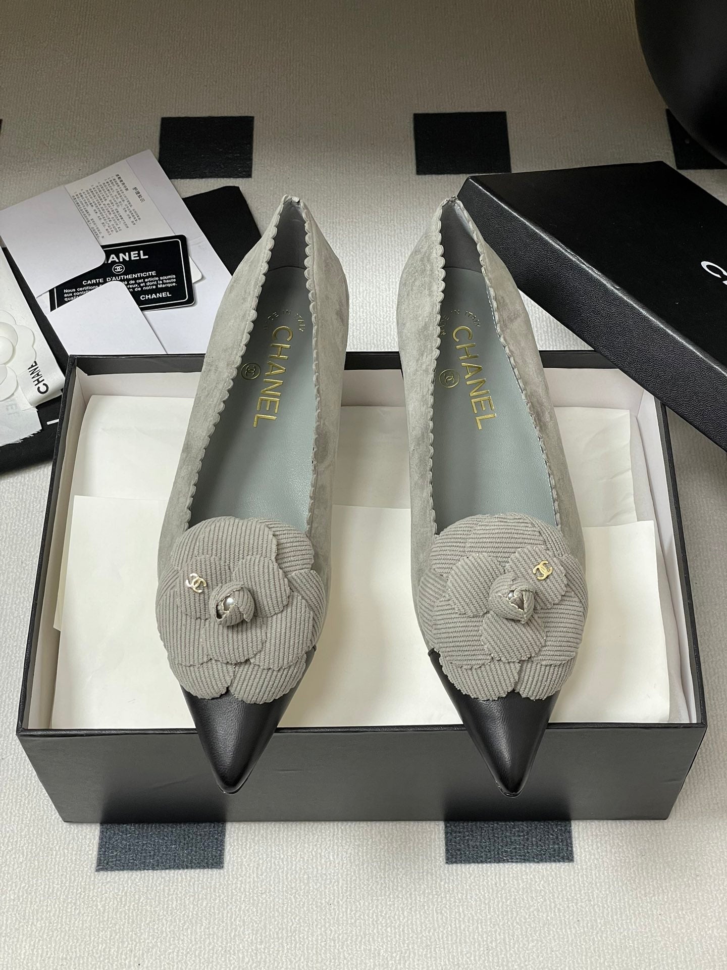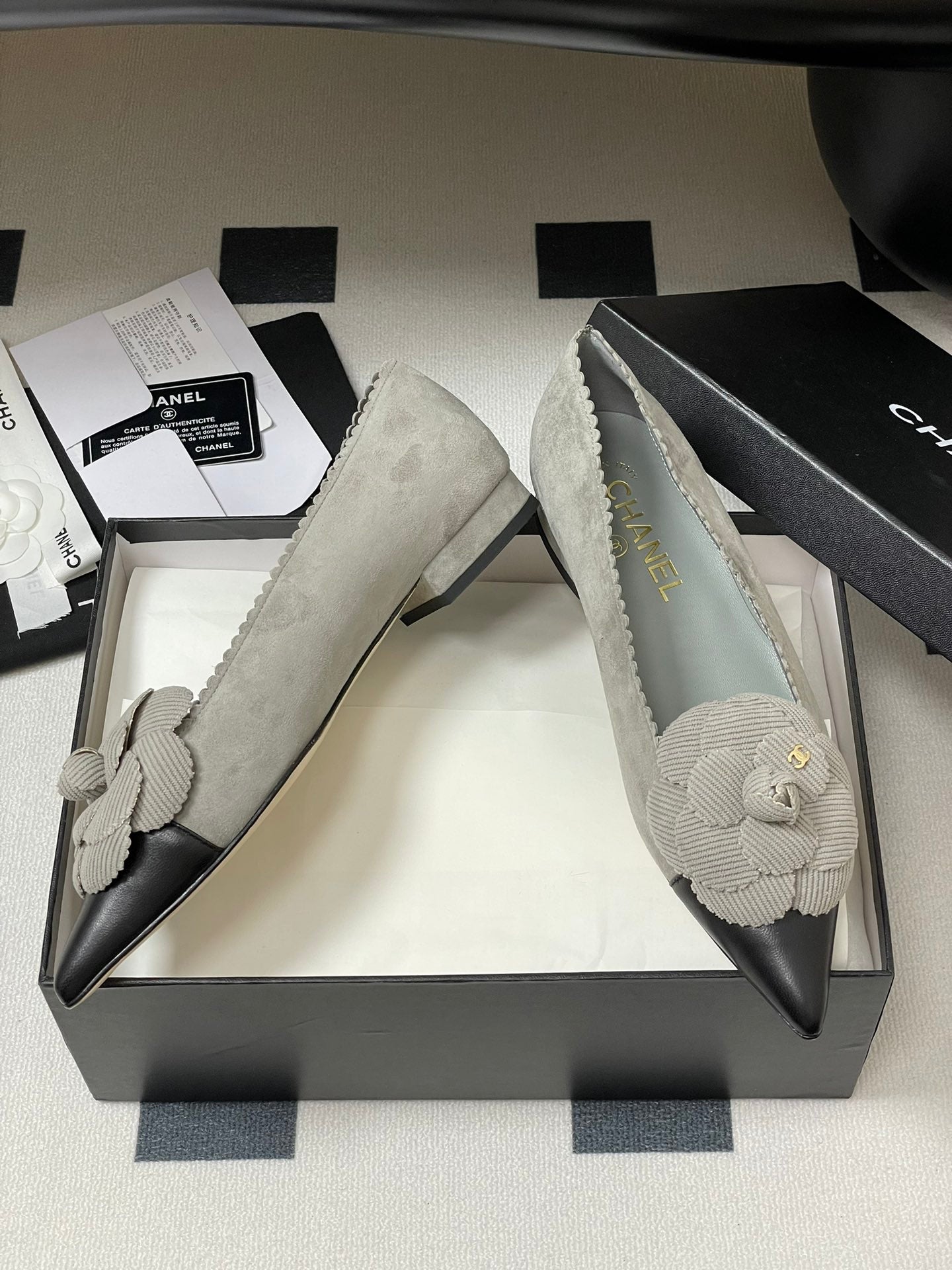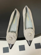 CC 25C Classic Camellia Pointed High Heels Flat 15mm Grey Suede 247607