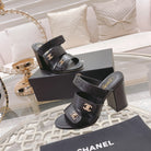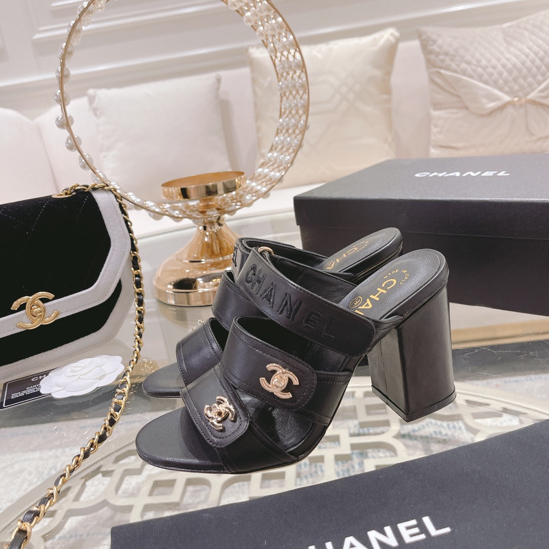 CC 25C Three Strap Sandal Mule High Heel Black Sheepskin 213348