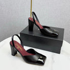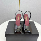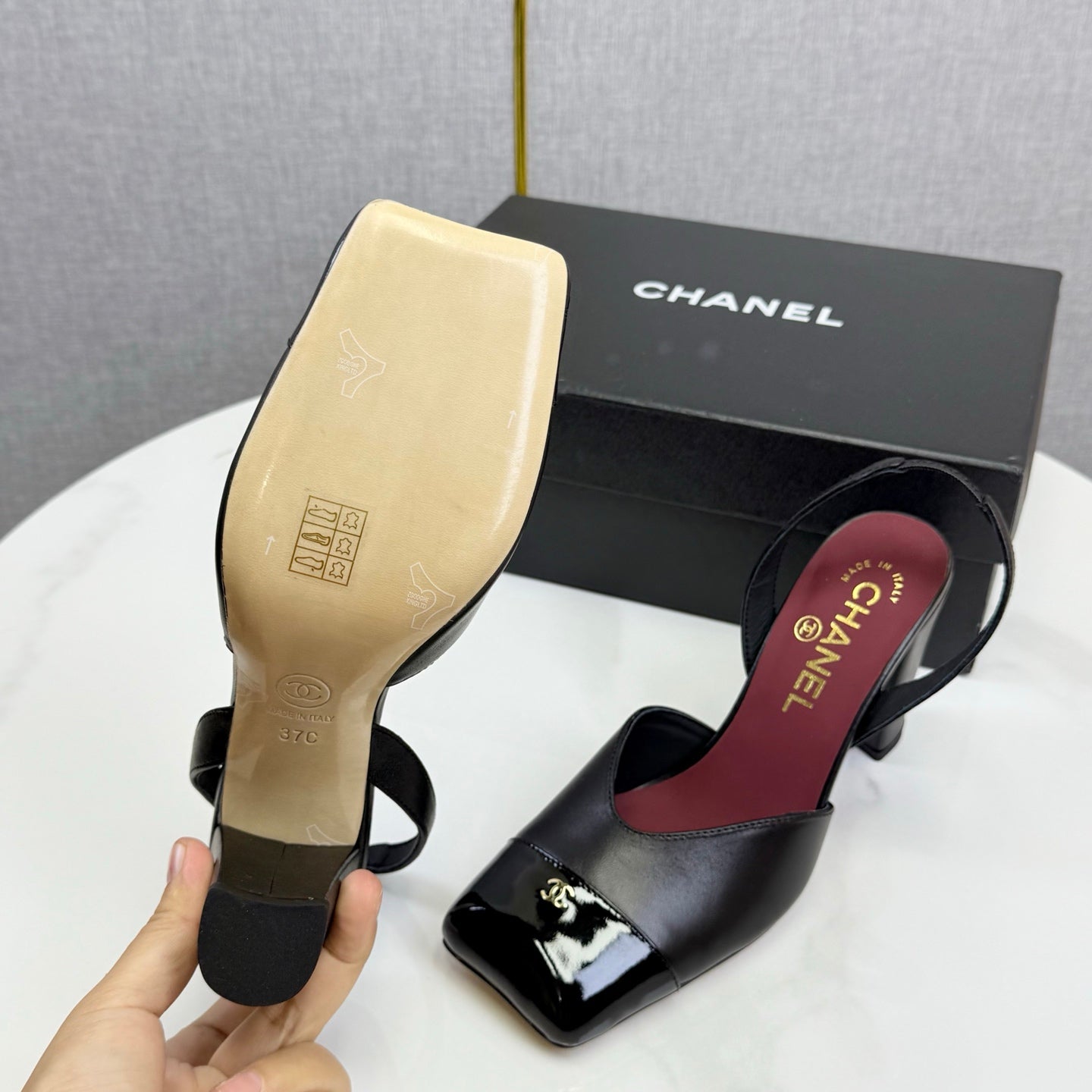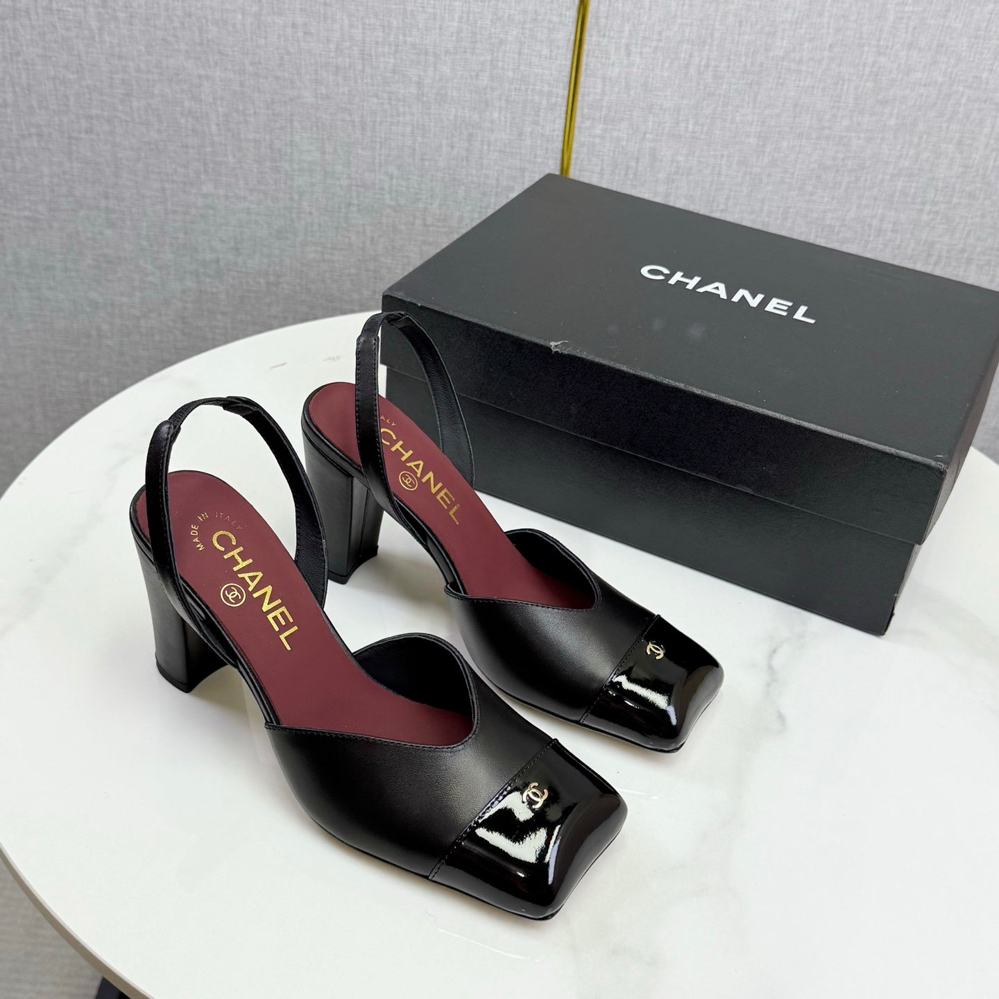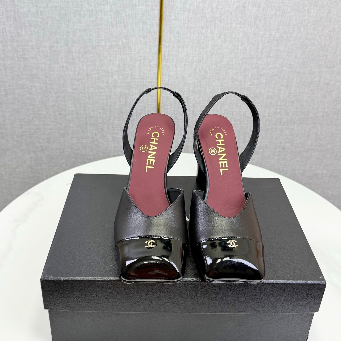 CC 25FW Square Toe Slingback Black Sheepskin Patent Leather 541134