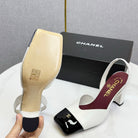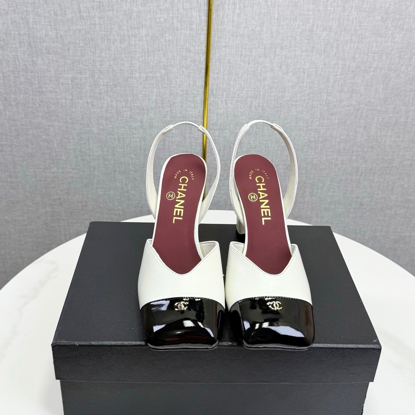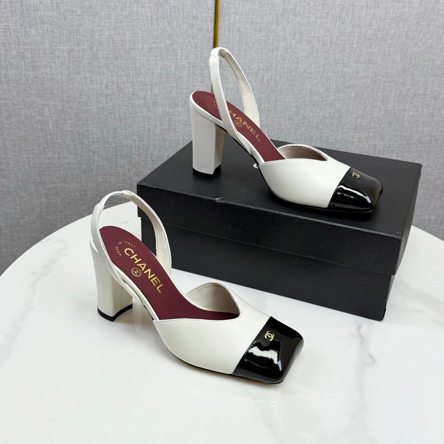 CC 25FW Square Toe Slingback Black White Sheepskin Patent Leather 541132