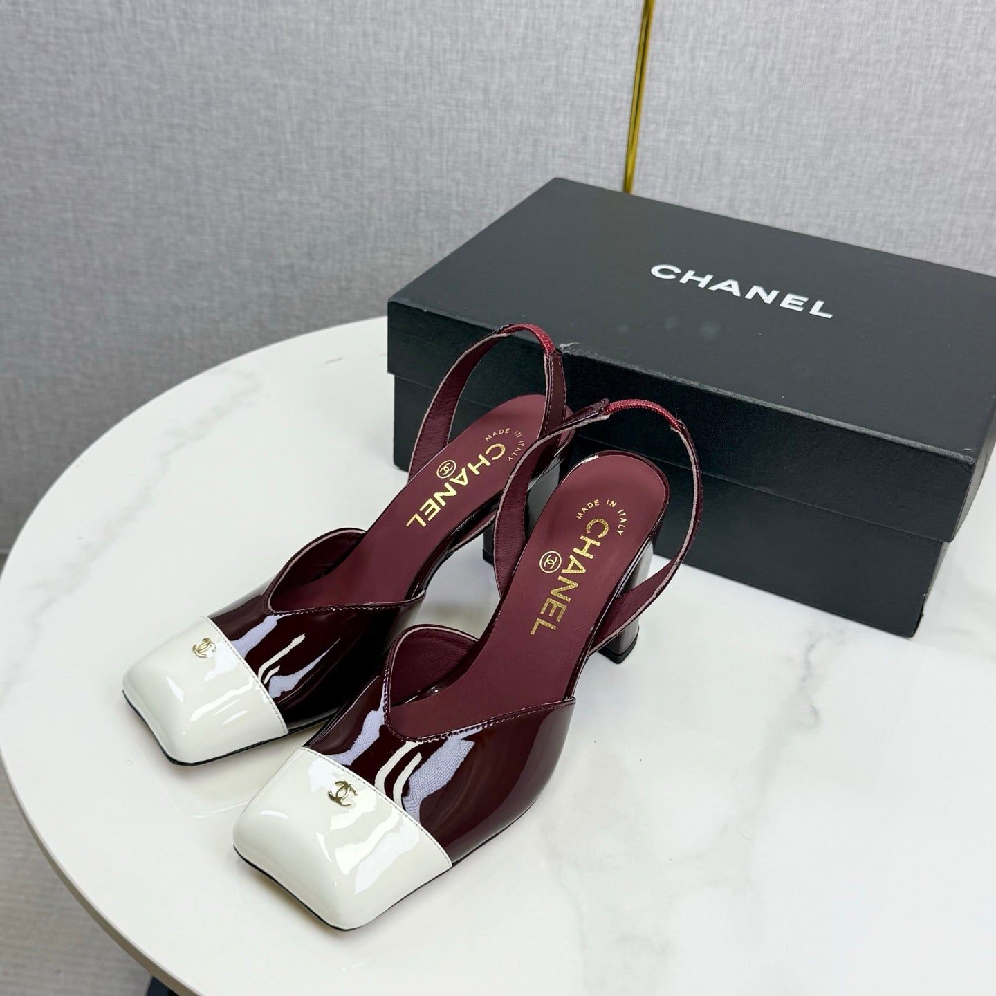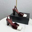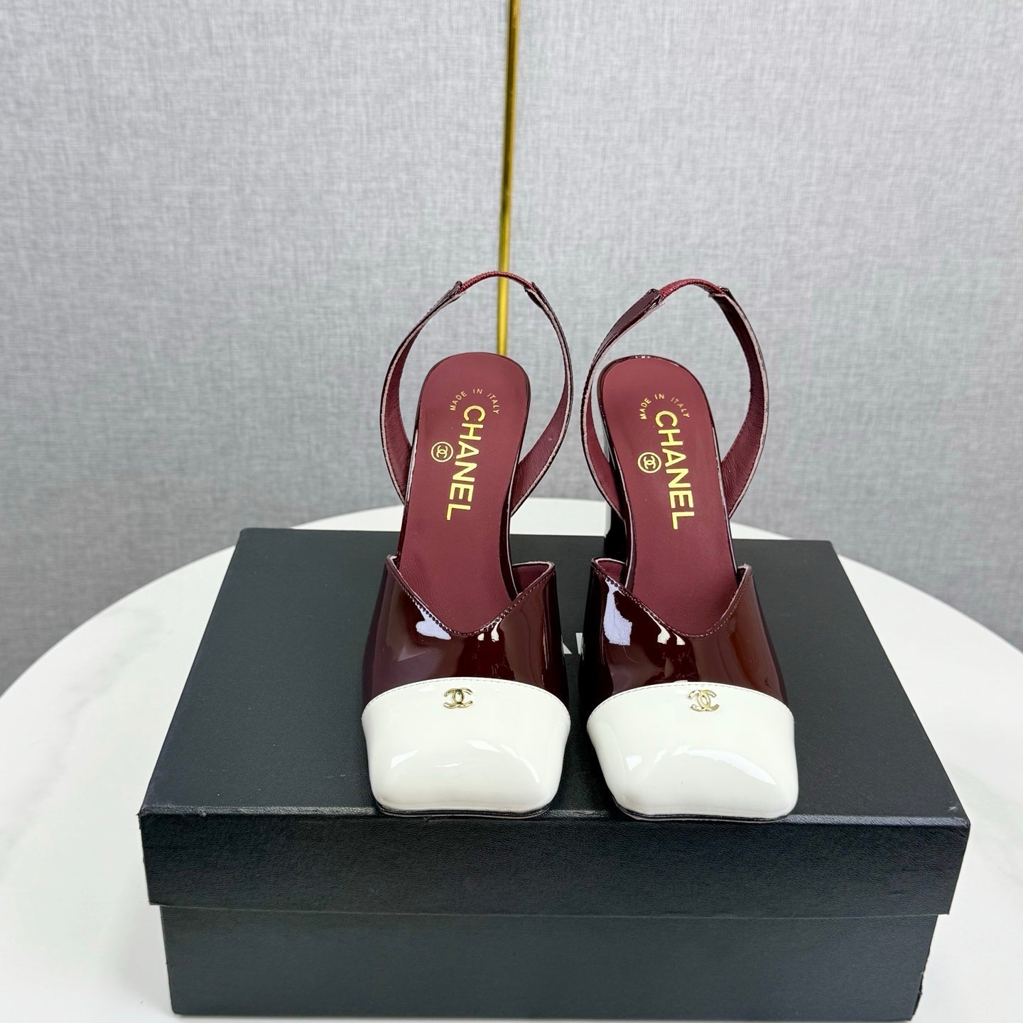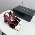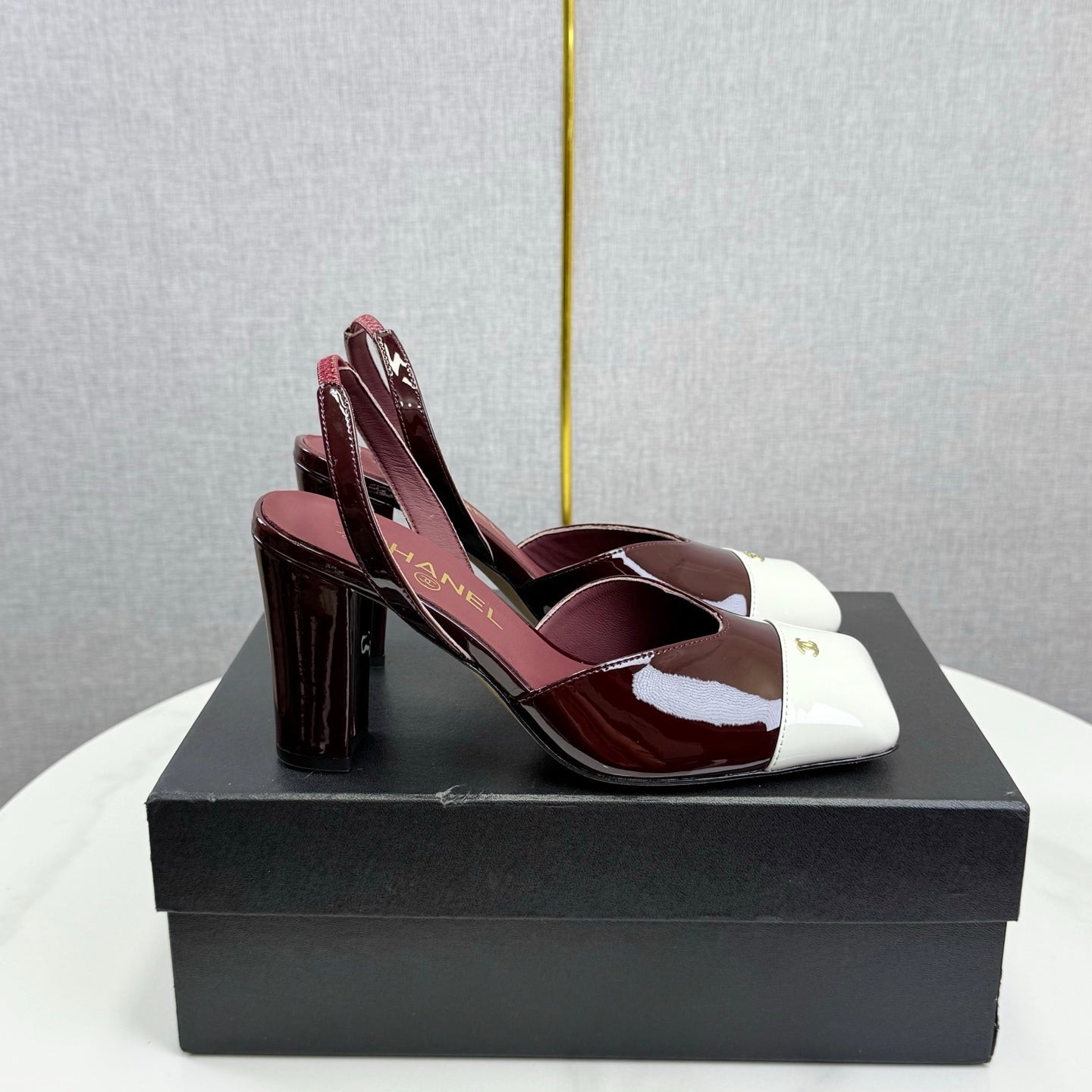 CC 25FW Square Toe Slingback White Dark Burgundy Patent Leather 541136