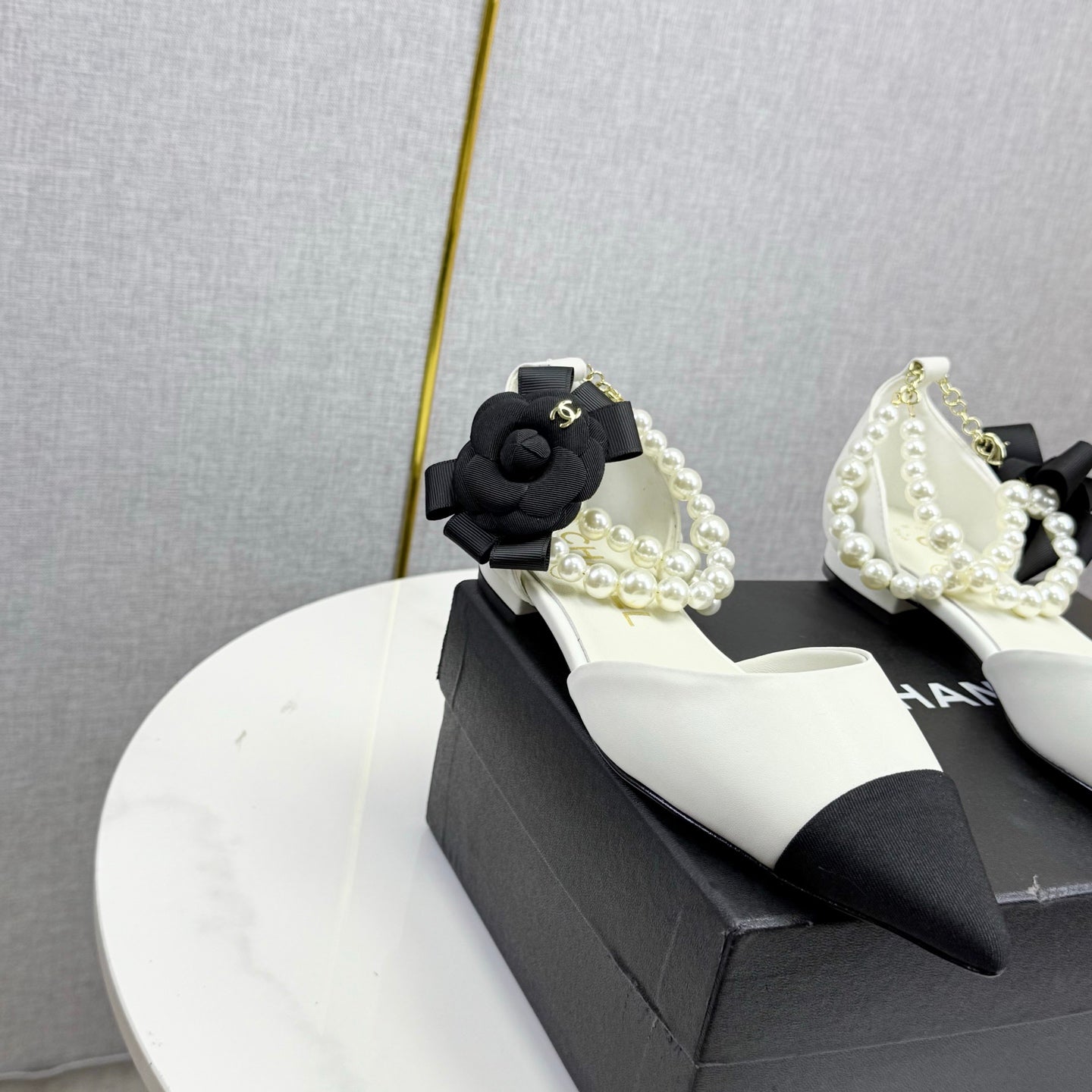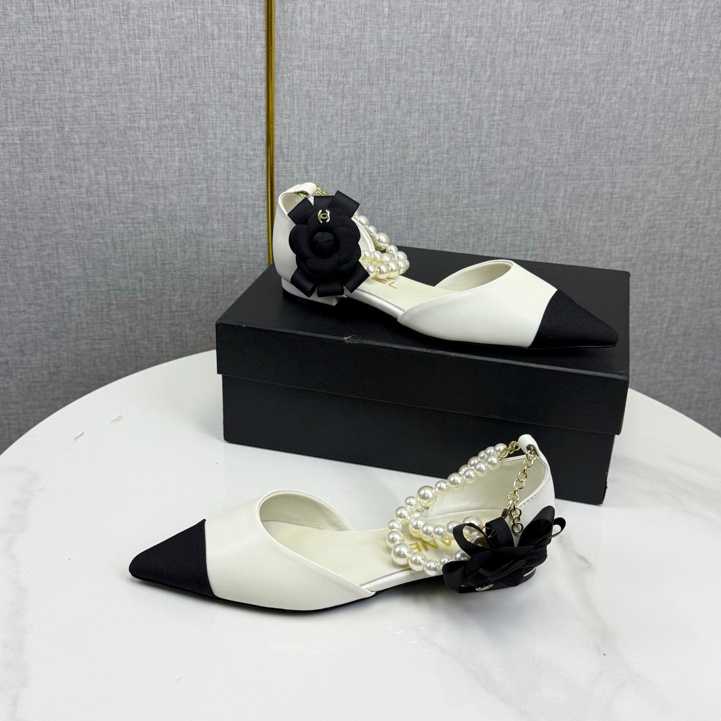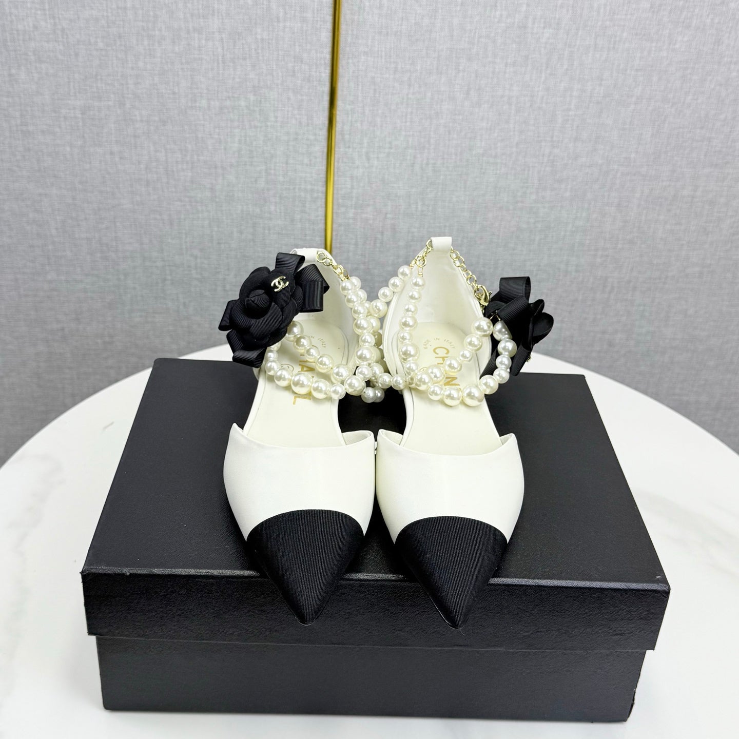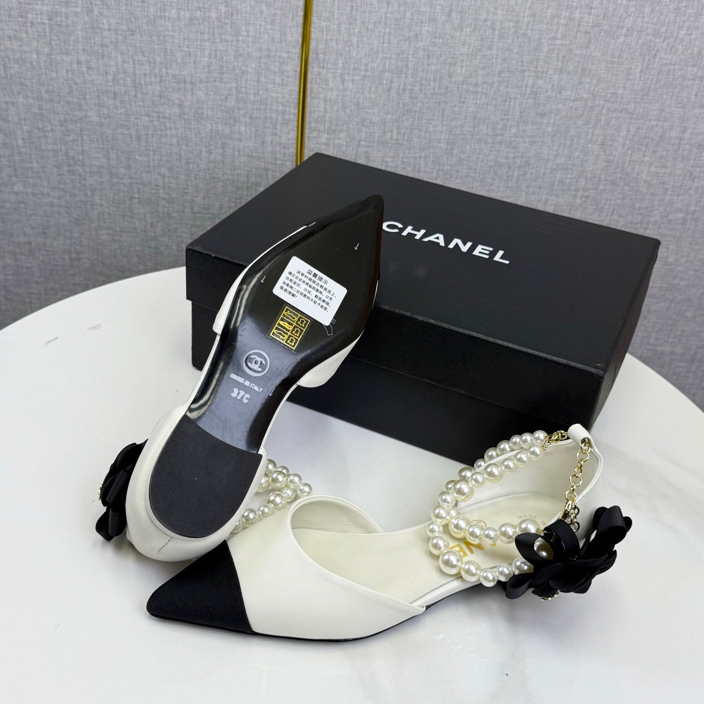 CC 25K New Pearl Chain Slingback Black White Sheepskin Fabric 541067