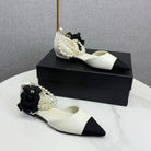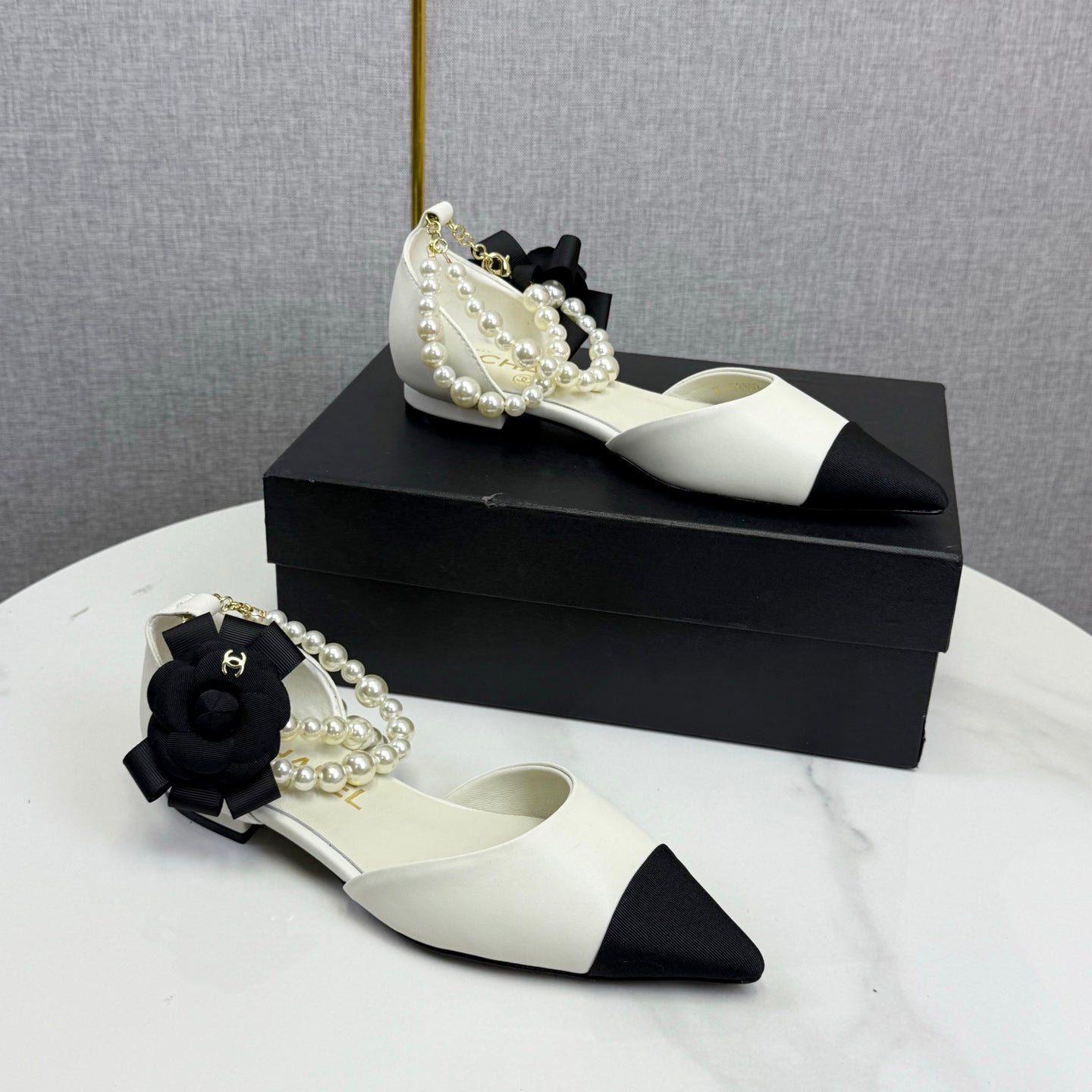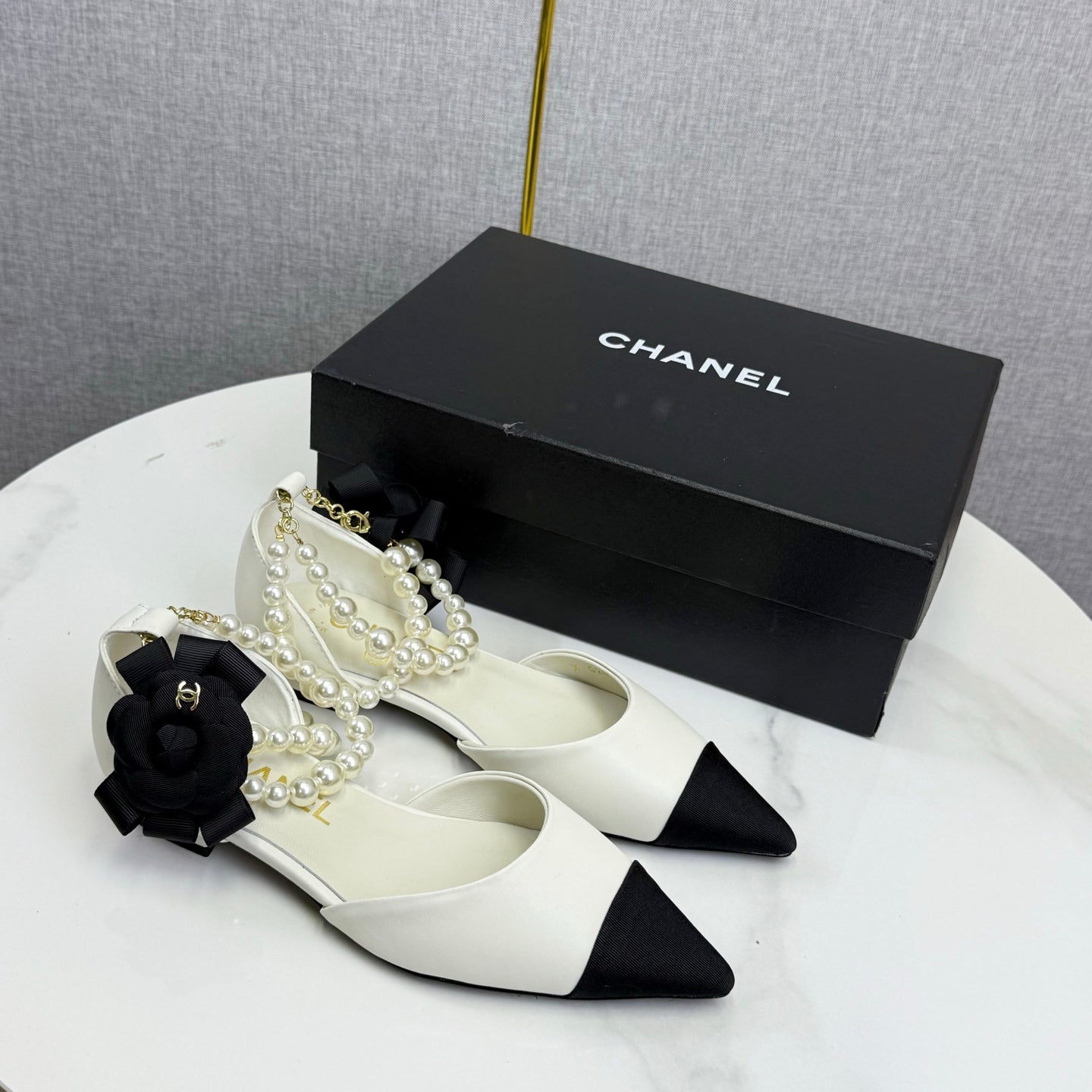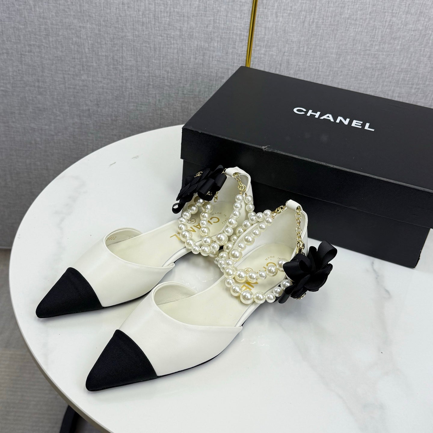 CC 25K New Pearl Chain Slingback Black White Sheepskin Fabric 541067