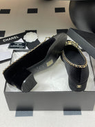 CC 25S 60mm Chain Bow Single Pumps Black Velvet Sheepskin 247660