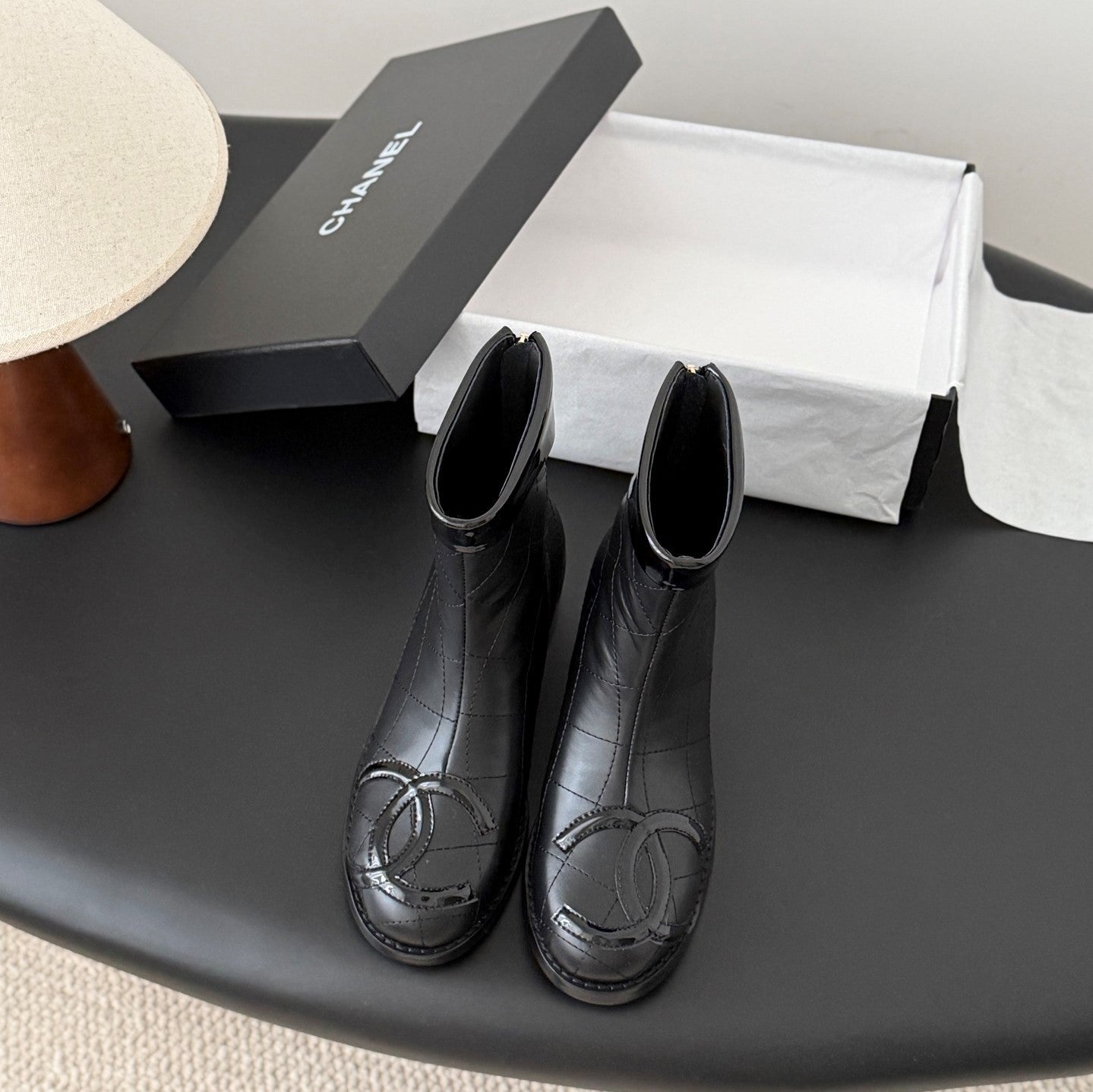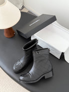 CC Cambon Ankle Boots Black Cowhide Patent Leather 540764