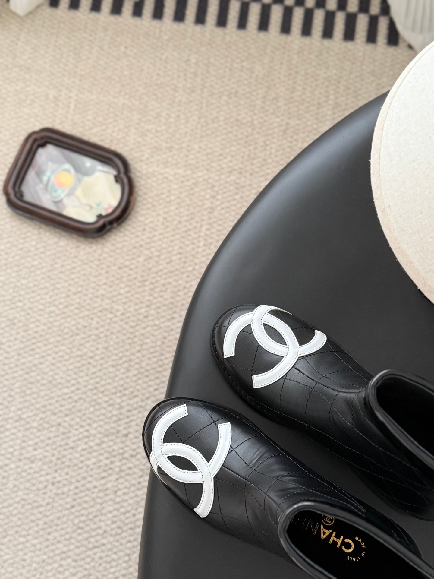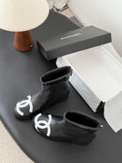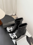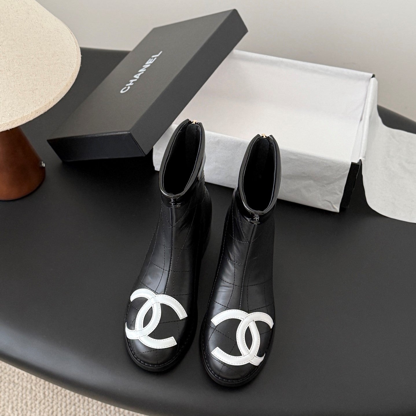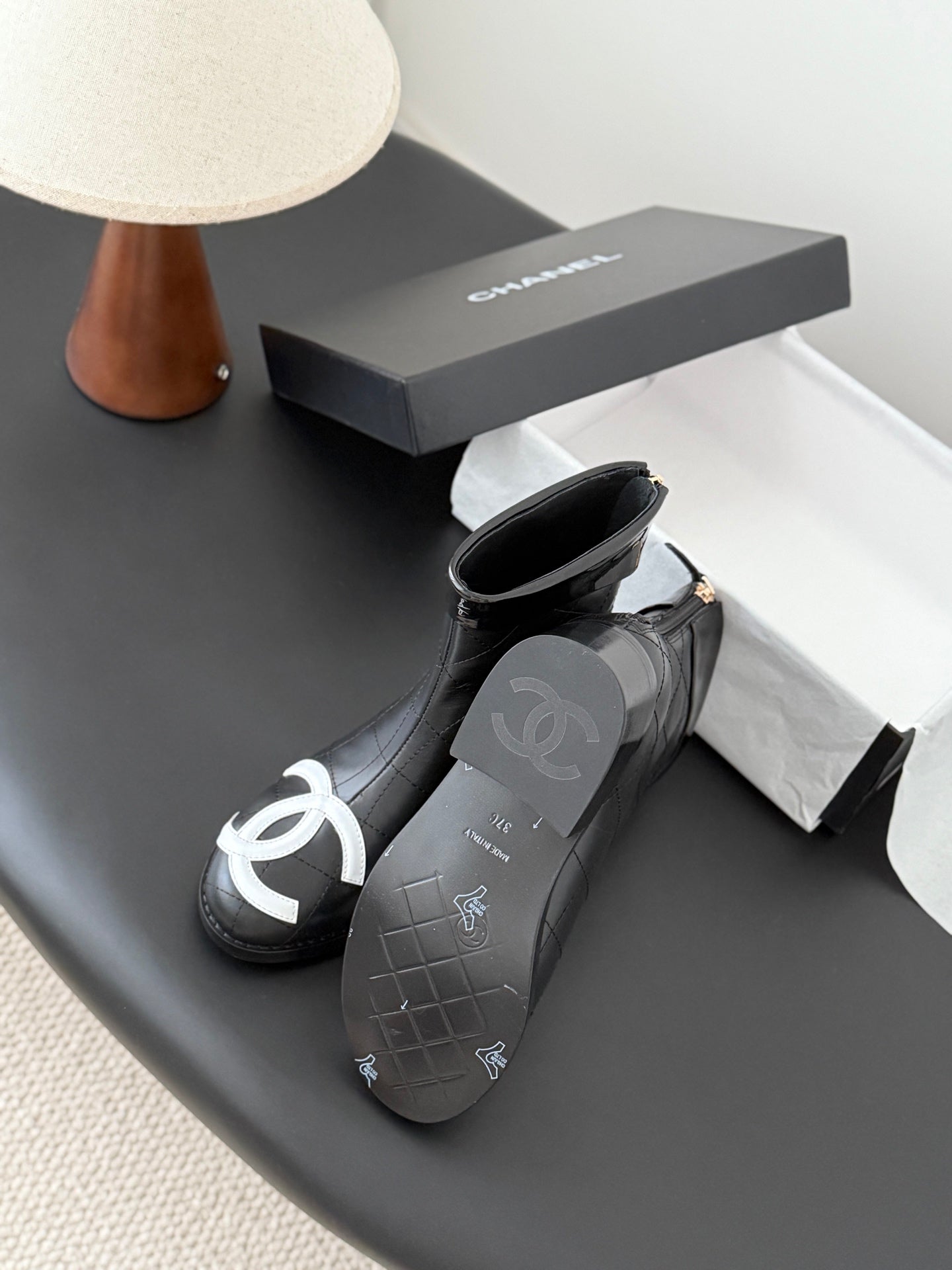 CC Cambon Ankle Boots Black White Cowhide Patent Leather 540763