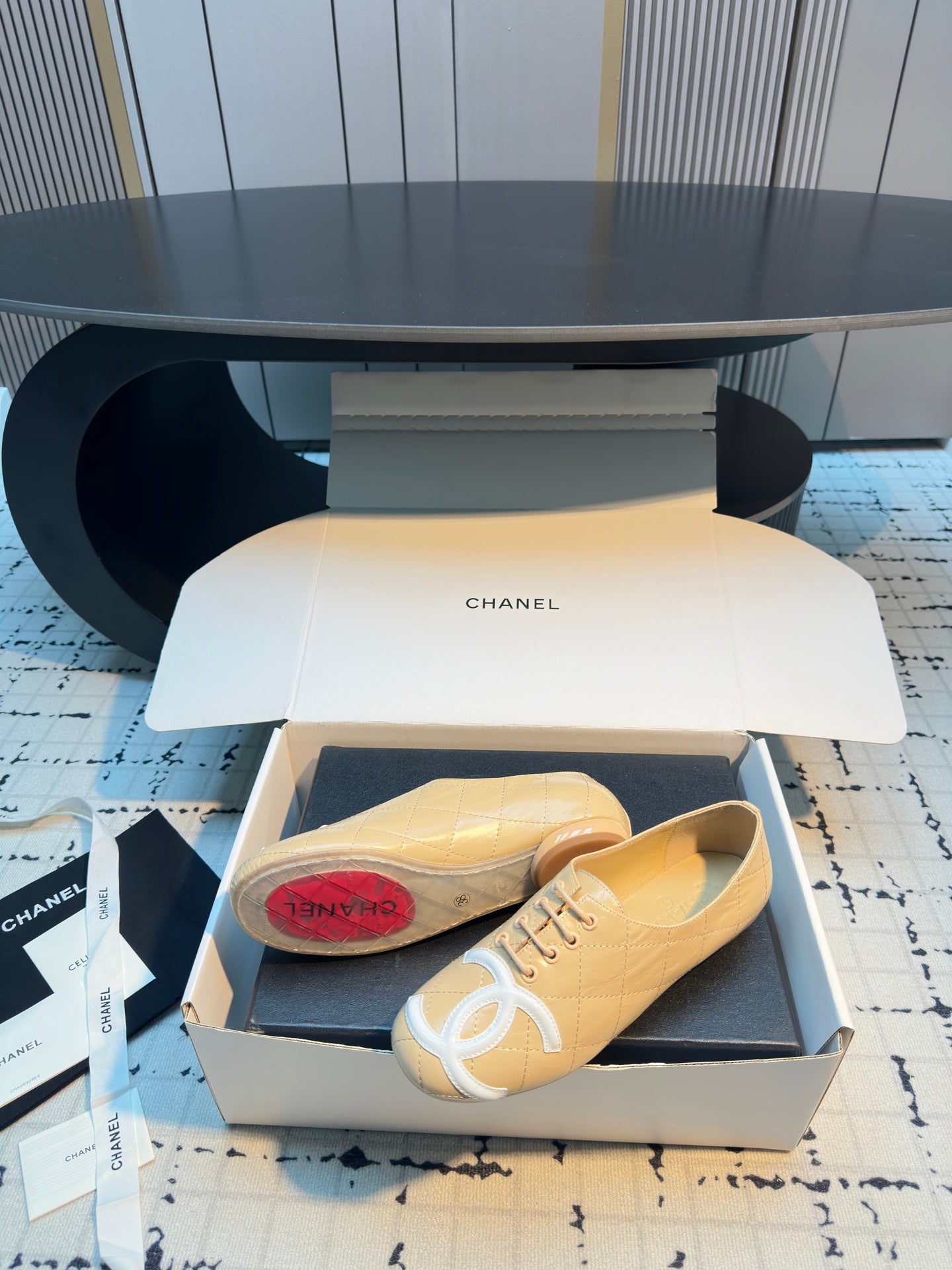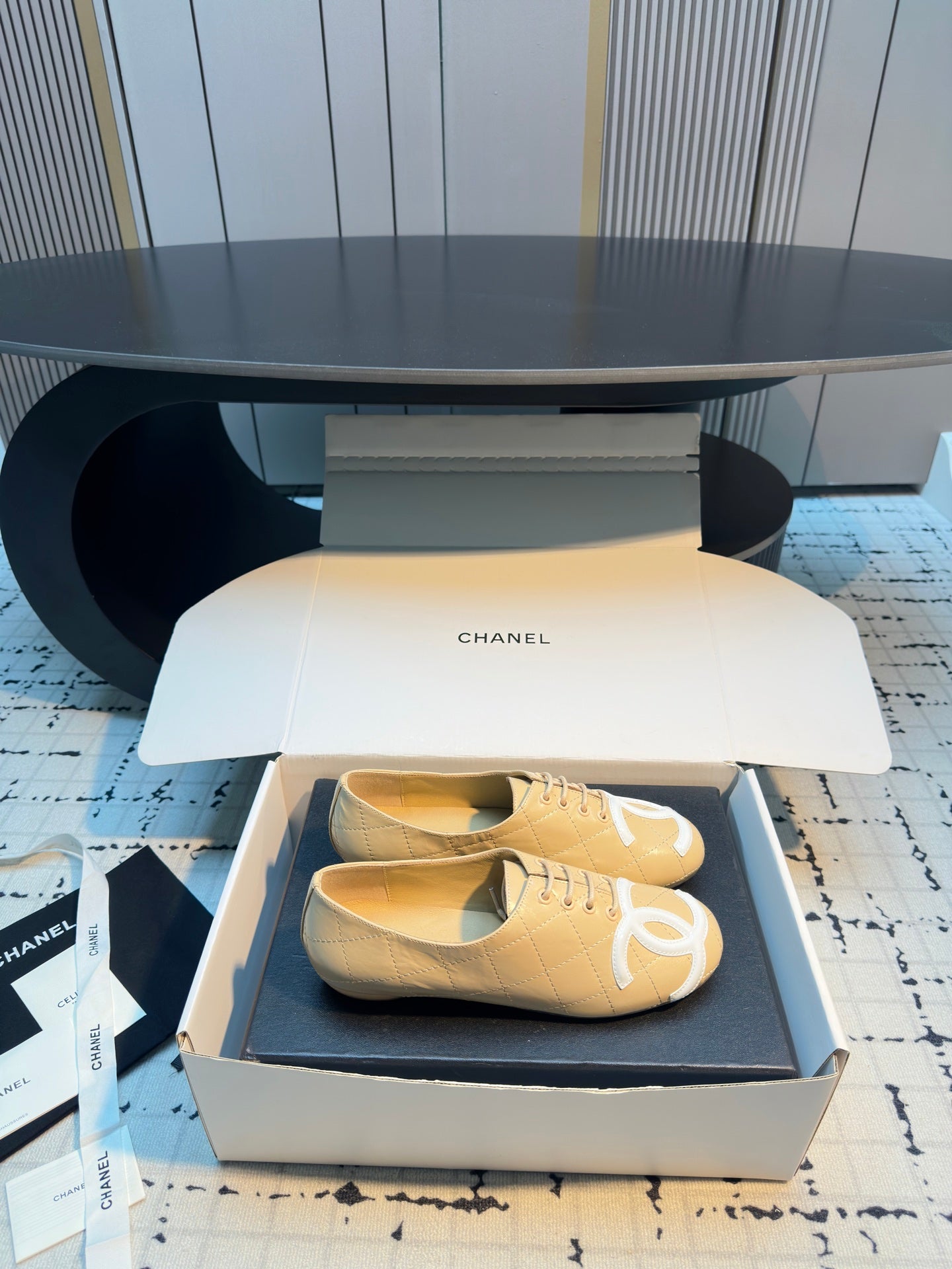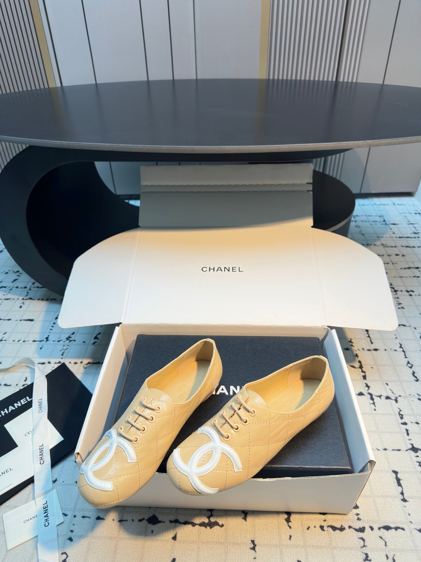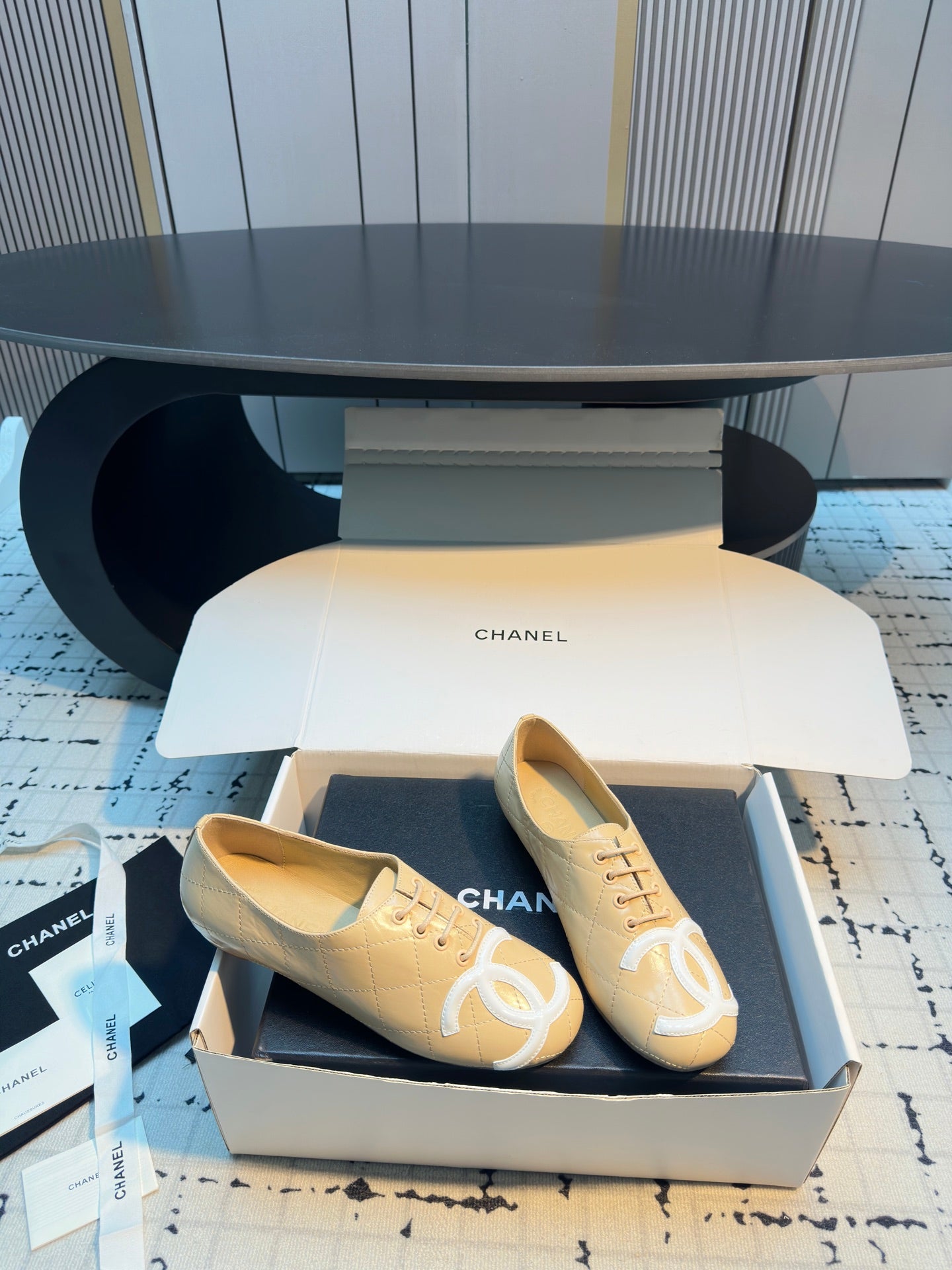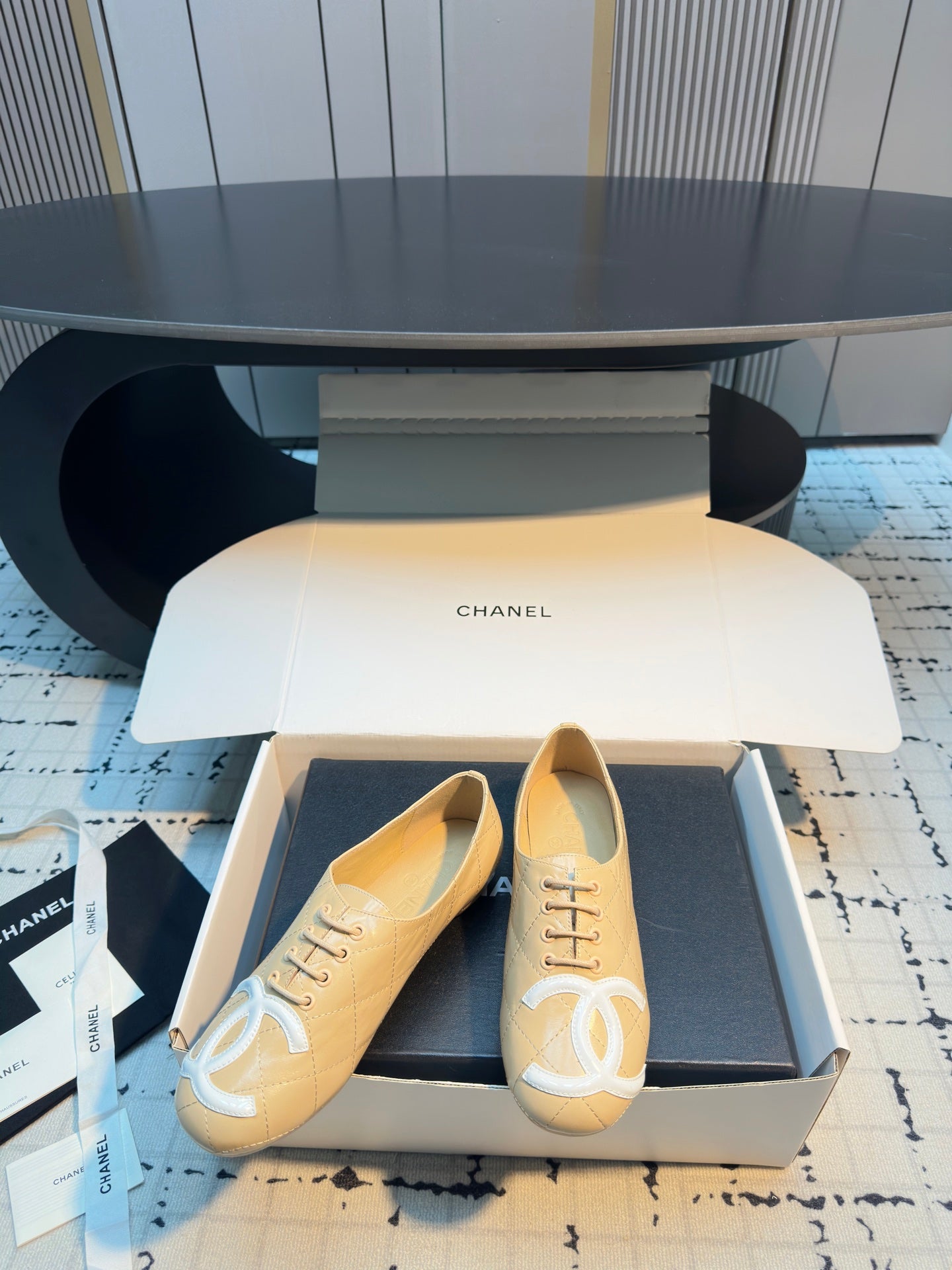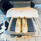 CC Cambon Ballet Shoes Beige White Cowhide 538144