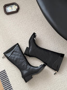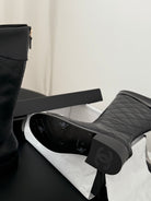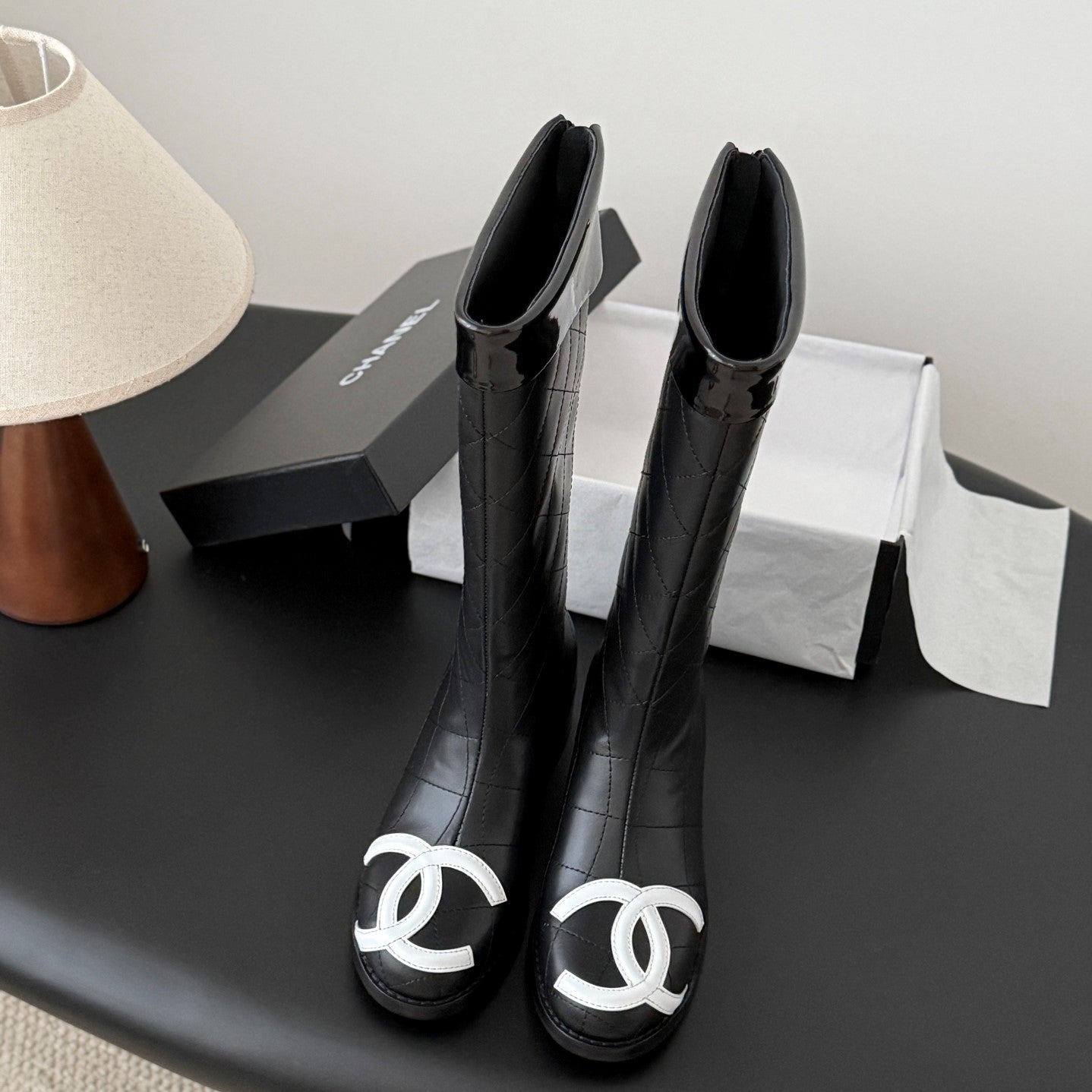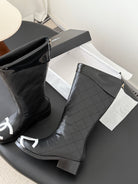 CC Cambon Mid-Calf Boots Black White Cowhide Patent Leather 540766