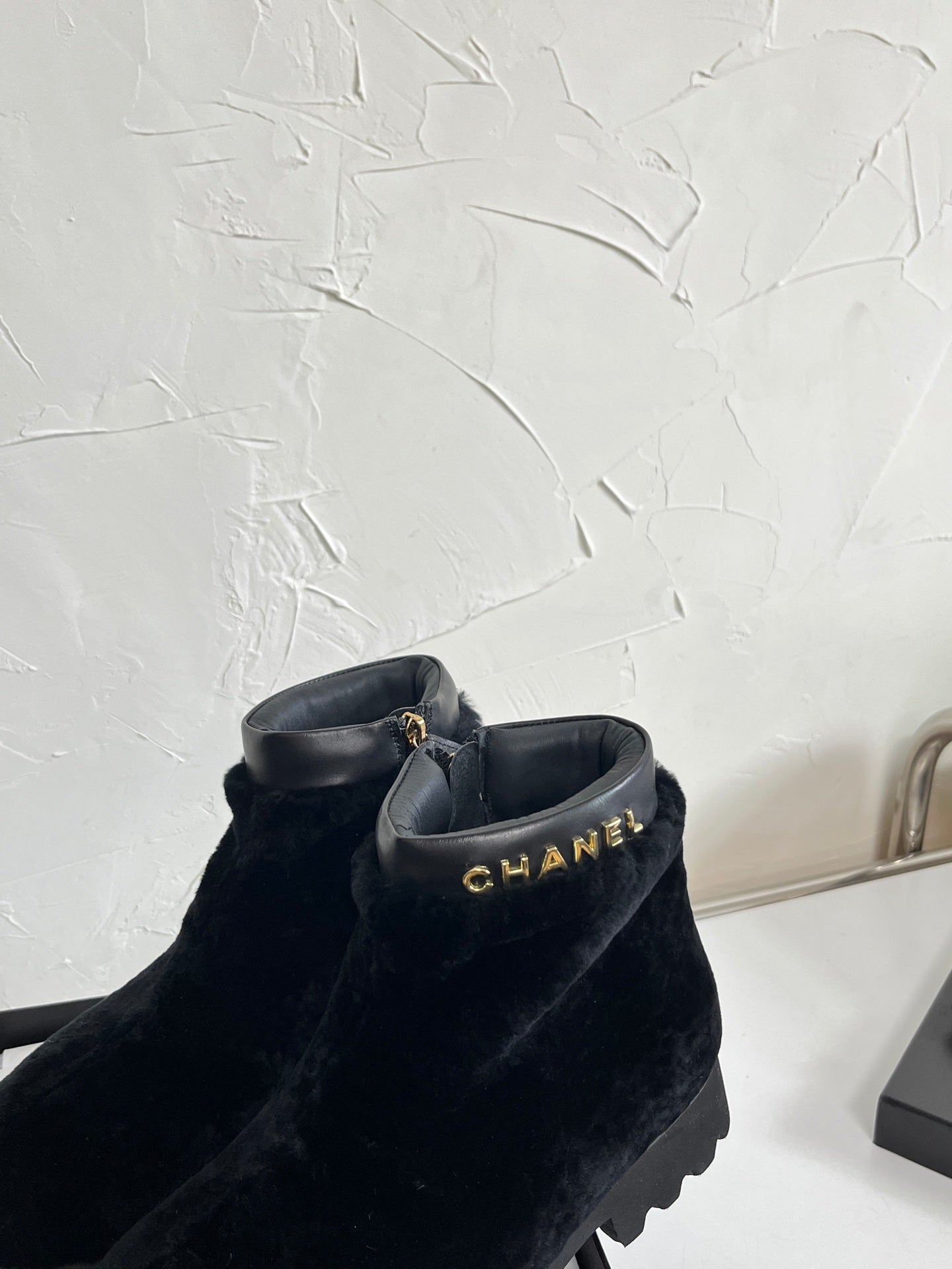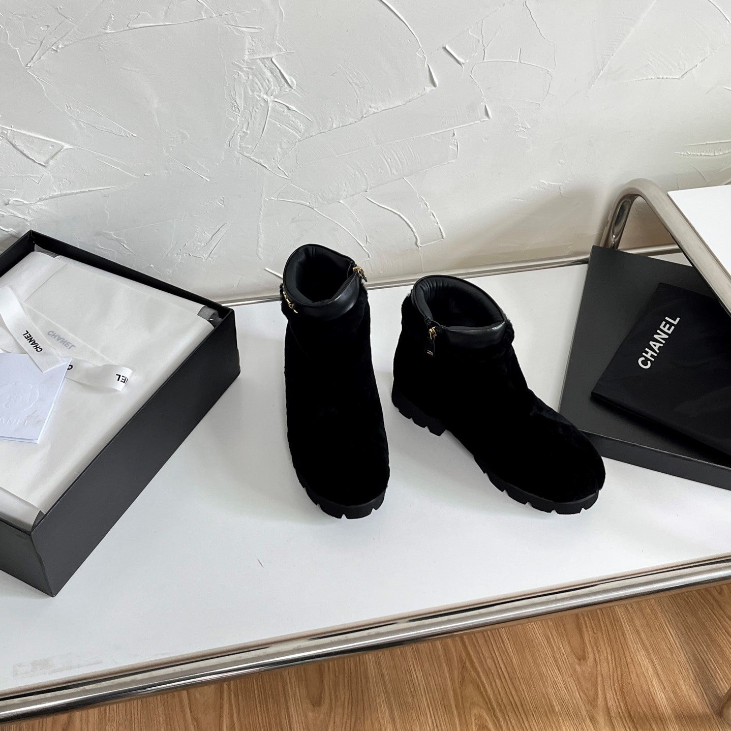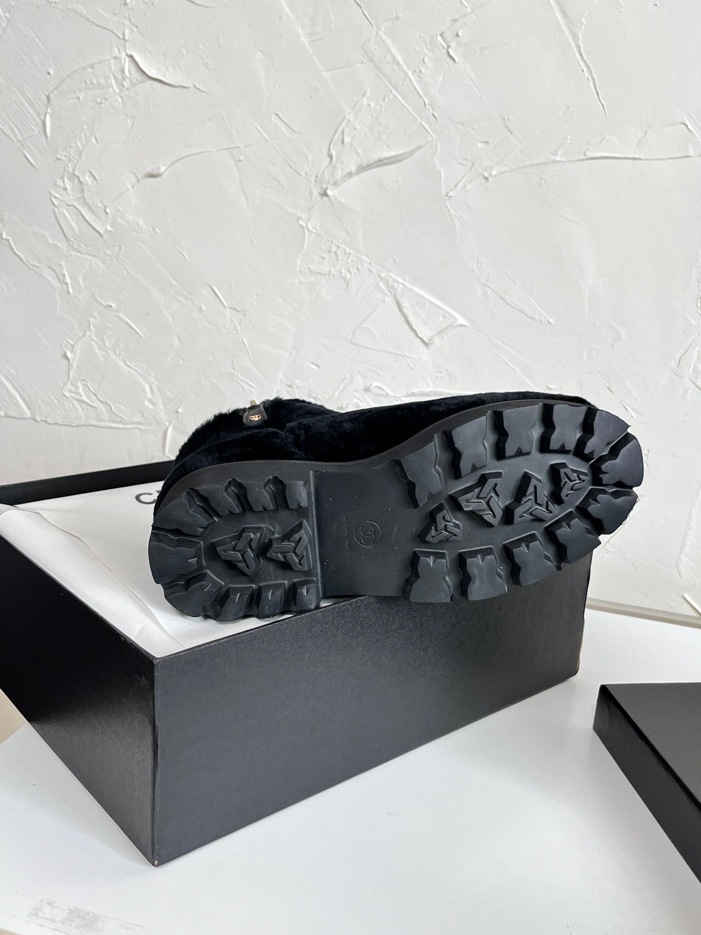 CC Interlocking CC Logo Boots Shearling Black Leather 543111