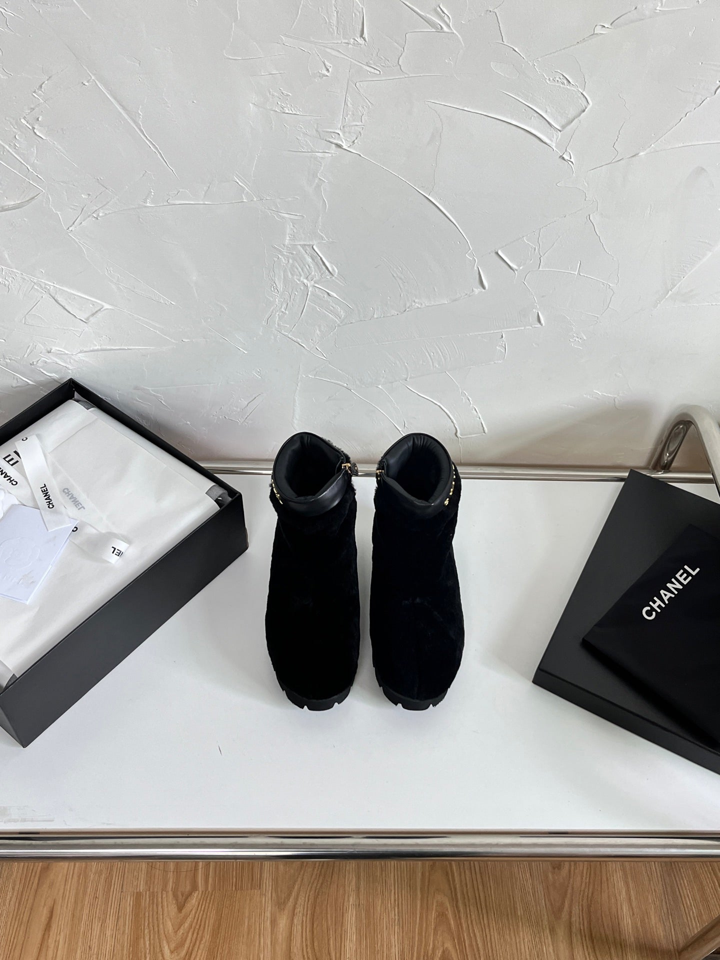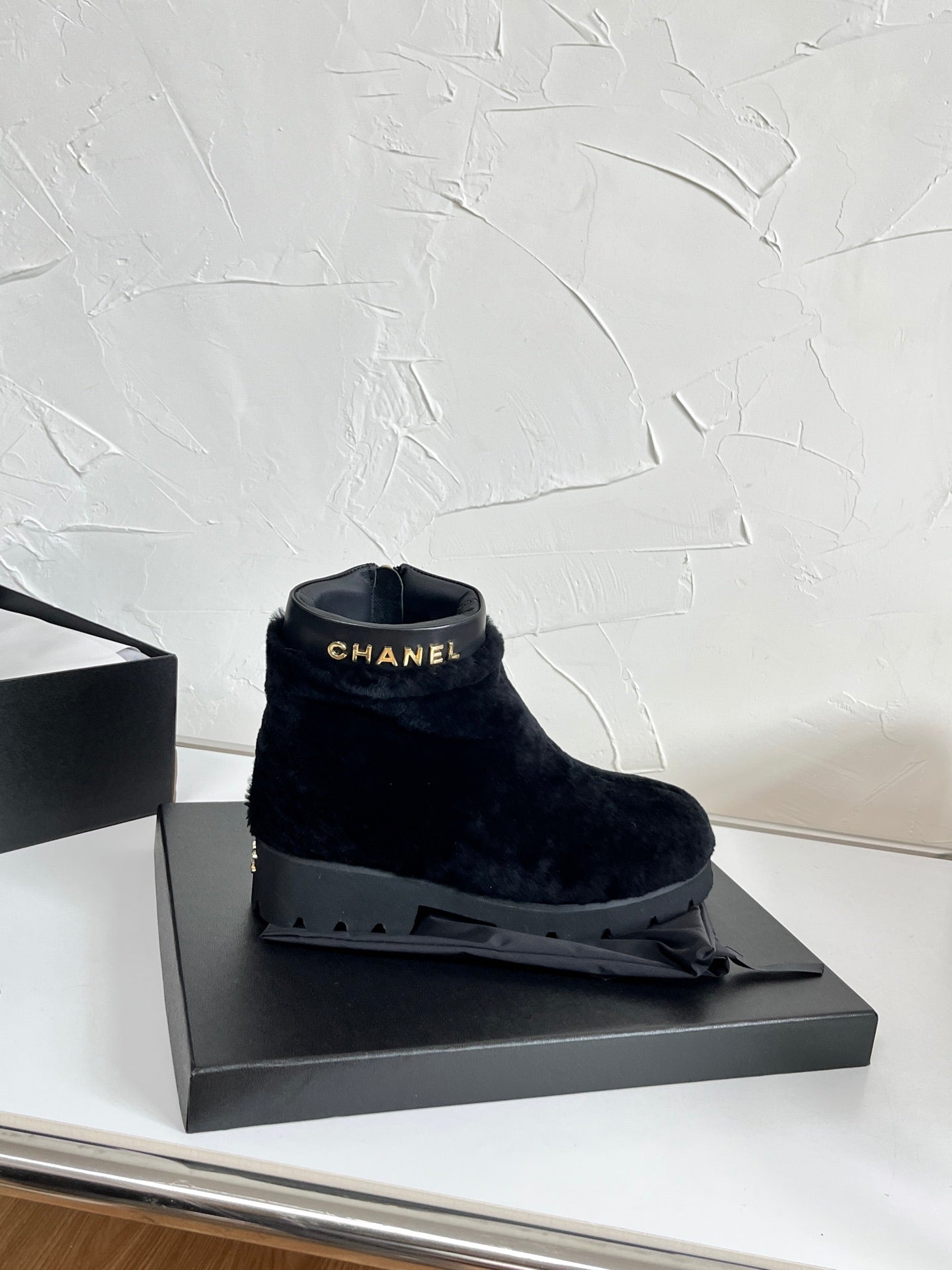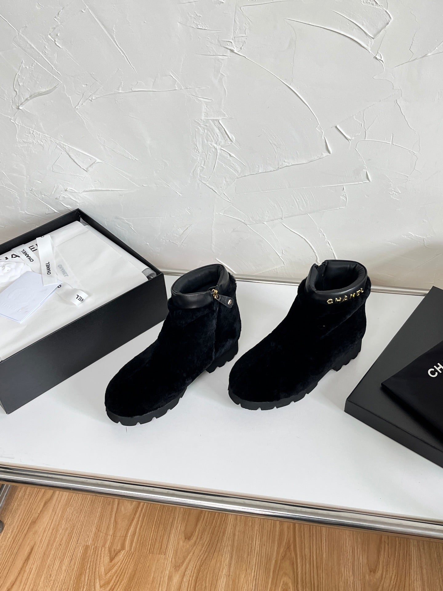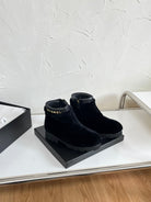 CC Interlocking CC Logo Boots Shearling Black Leather 543111