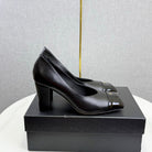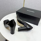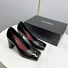 CC Square Toe Slingback Black Sheepskin Patent Leather 541131