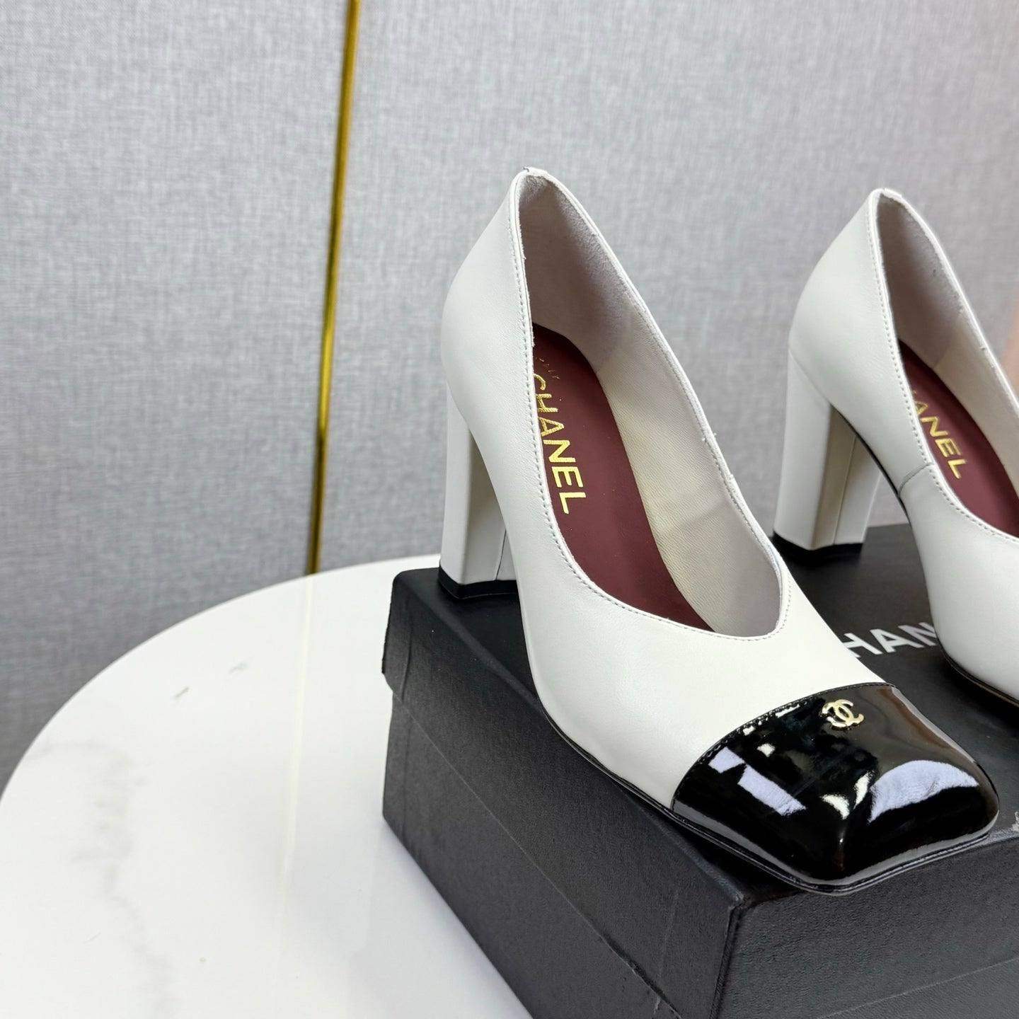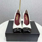 CC Square Toe Slingback Black White Sheepskin Patent Leather 541130