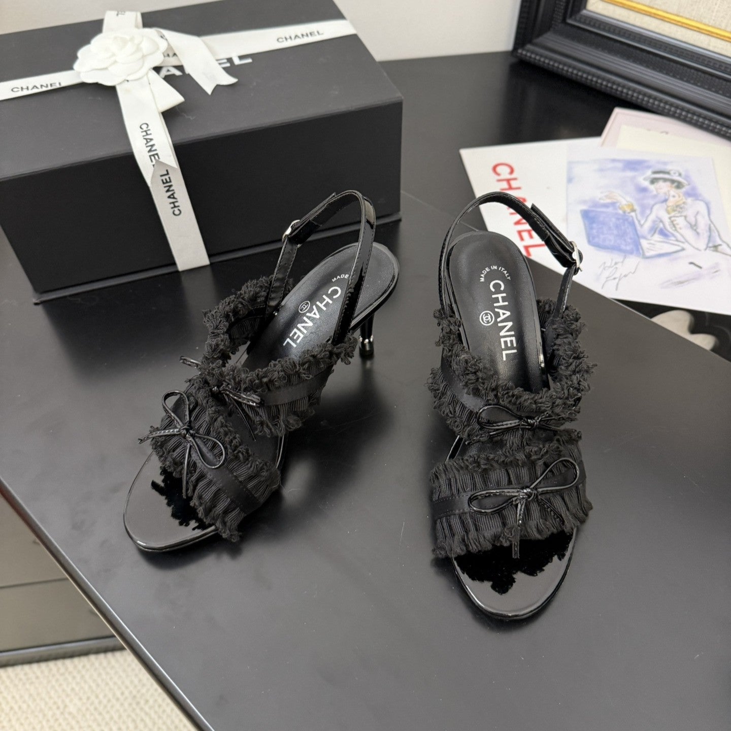 cc25 slingback sandal ̣90mm bow black grosgrain canvas 233596