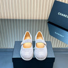 CHANEL 25S DOUBLE-STRAP MARY JANE SHOES IN LIGHT GRAY SUEDE