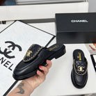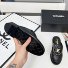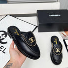 CHANEL 25S MULES WITH CHAIN DETAIL IN BLACK CALFSKIN GOLD HARDWRE