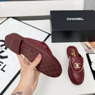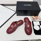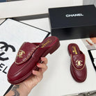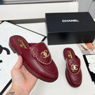 CHANEL 25S MULES WITH CHAIN DETAIL IN BURGUNDY CALFSKIN GOLD HARDWRE