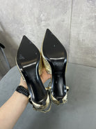 cl kitten with strap 45 gold lizard stamped metalized calfskin