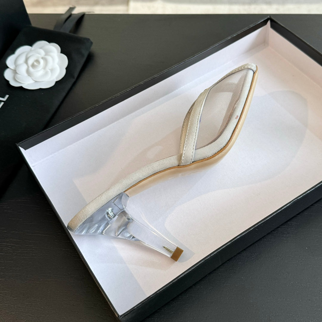 cc mule sandal white lace beige calfskin