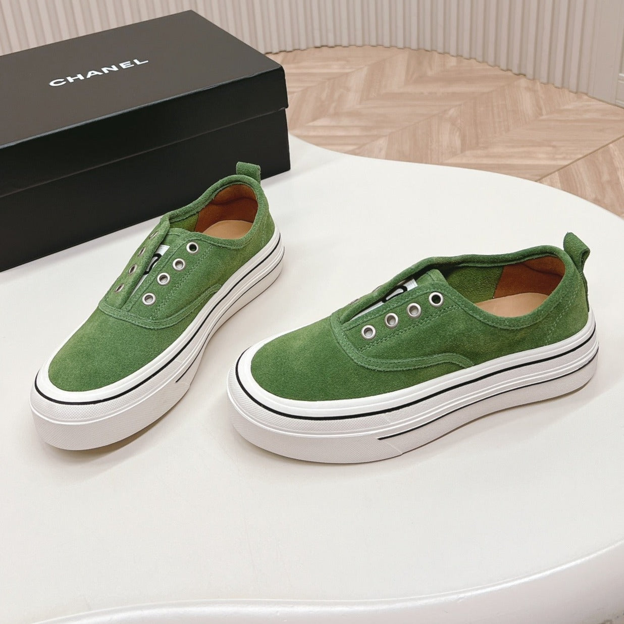 Double C Platform Biscuit Shoes Fabric Cool Green