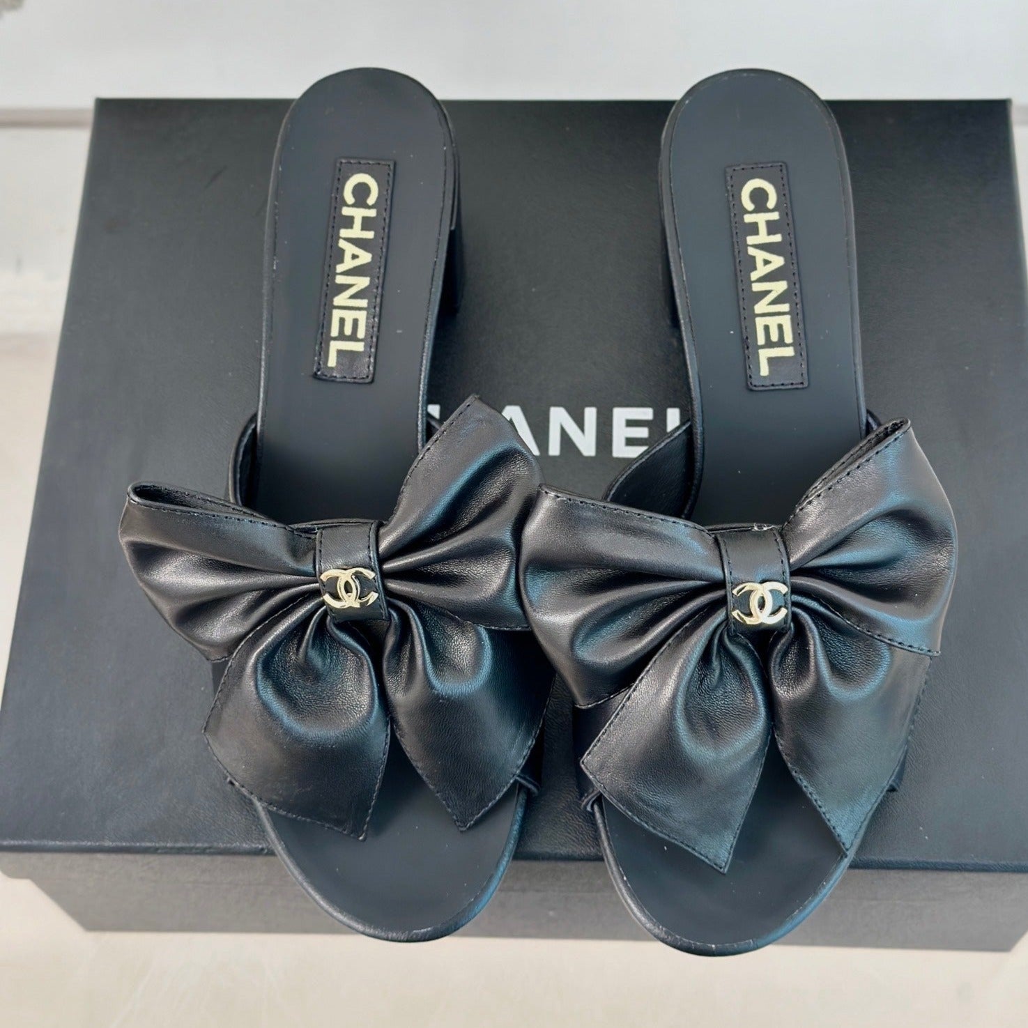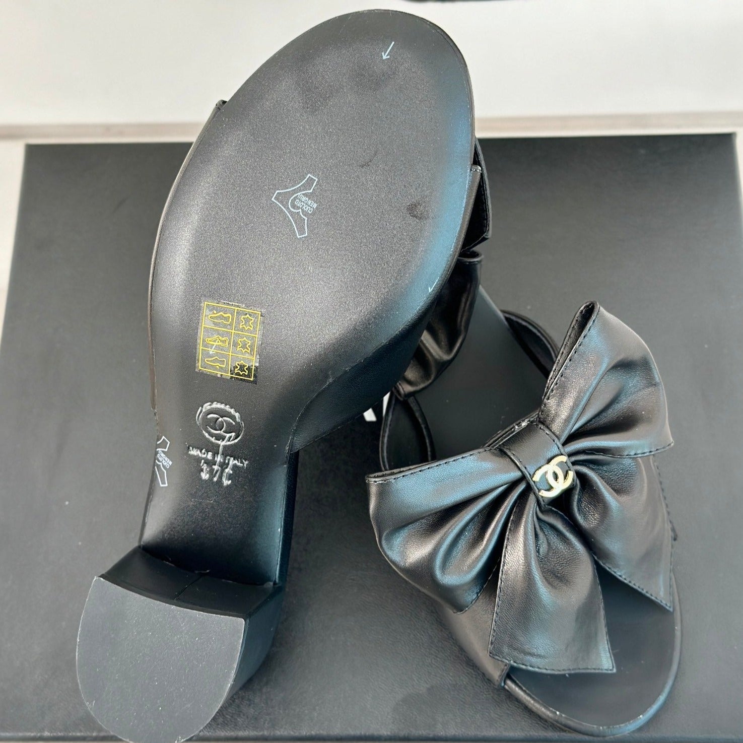 cc big bow sandal 60 black lambskin