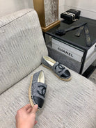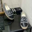 ESPADRILLE BLACK MIX WHITE TWEED FABRIC AND CALFSKIN FLATS 185046