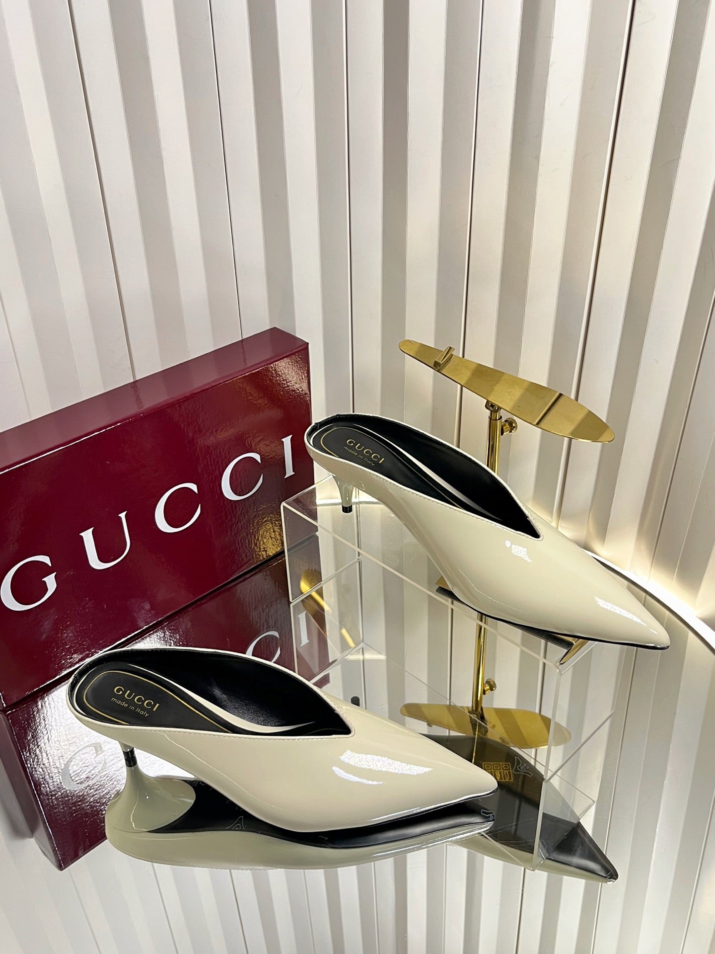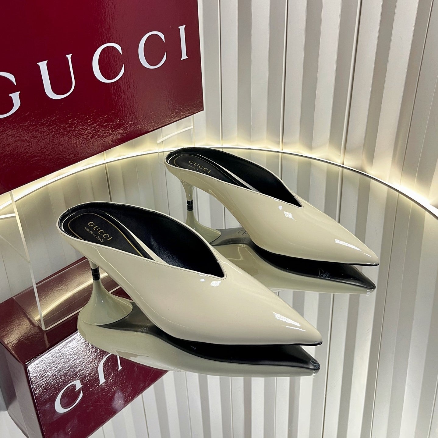 GG Women's Heeled Mules 50mm Cream Patent Leather 548396