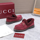 GG Women's Loafer Horsebit Red Suede Shearing 547324