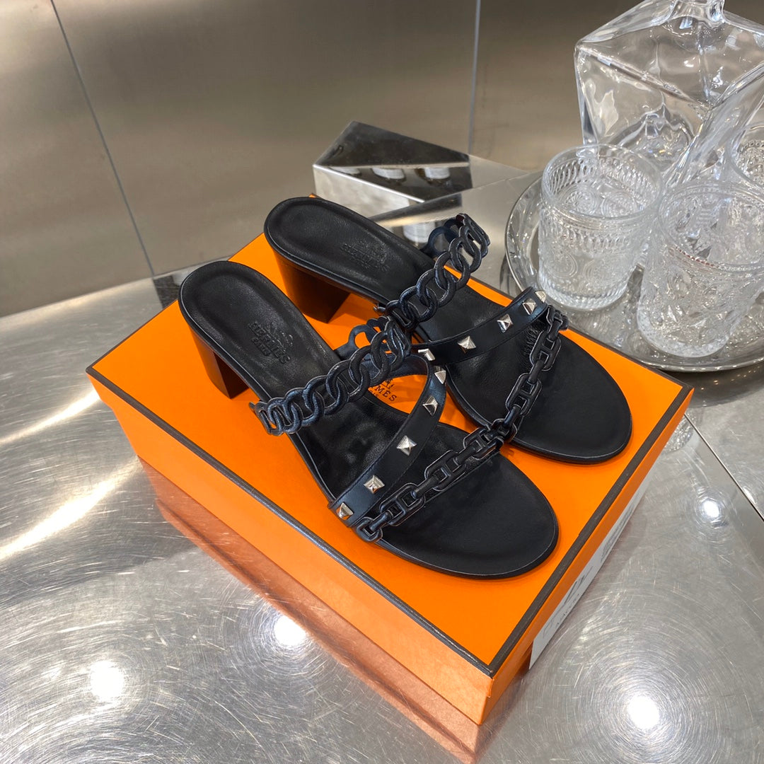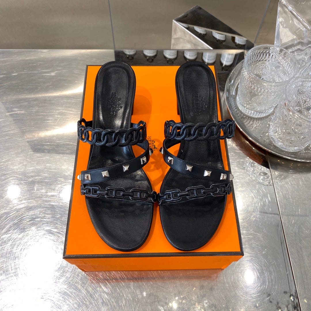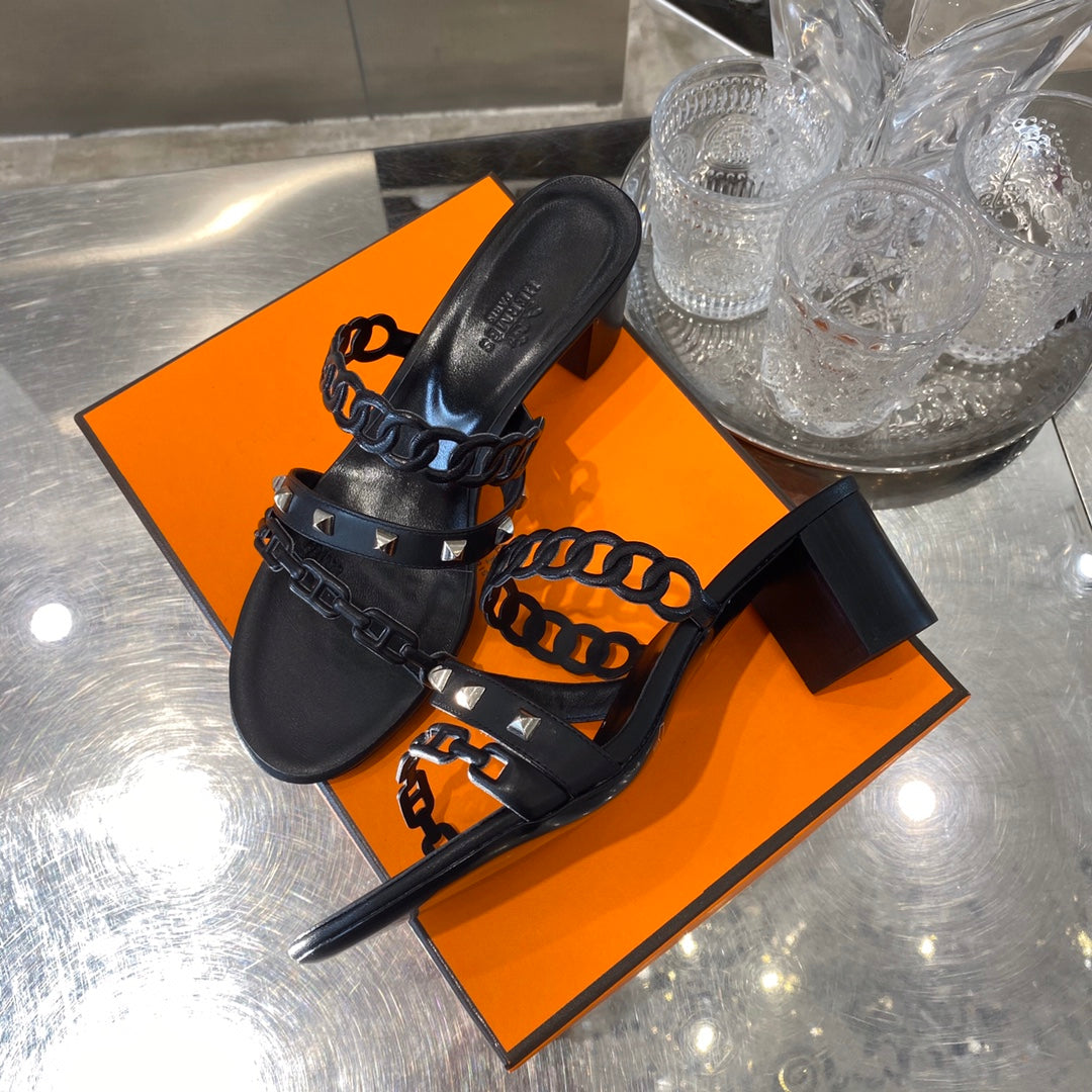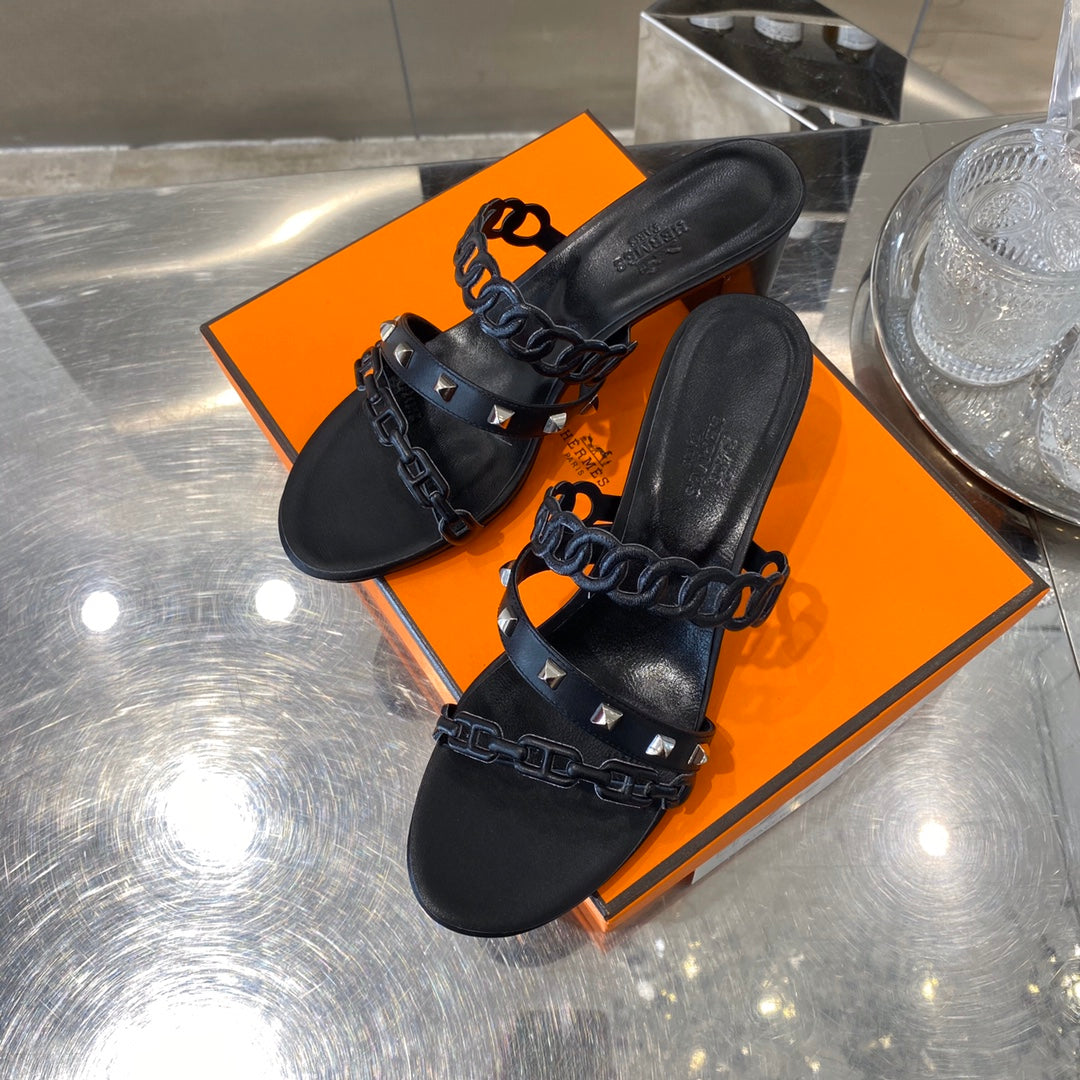 HM Amalfi Sandals 55mm Black Sheepskin 546263