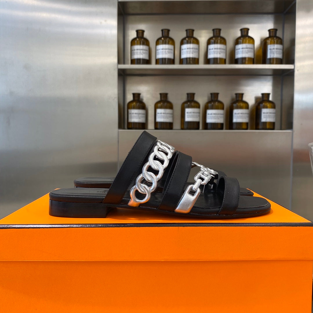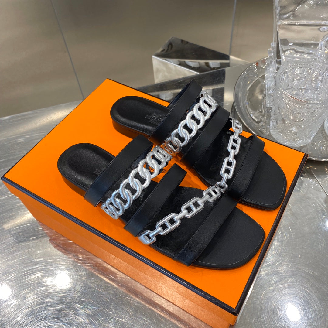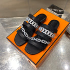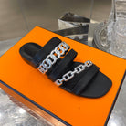 HM Amalfi Slide Sandals Black Sheepskin 546256