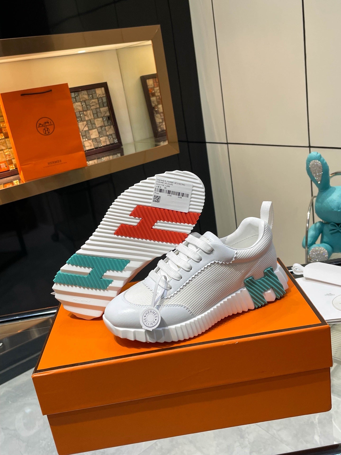 HM Bouncing Sneakers White Mesh and Sport Goatskin 531348