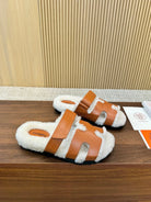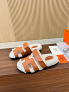 HM Chypre Sandal Burnt Orange Mix White Wool And Cowhide Lining 543687