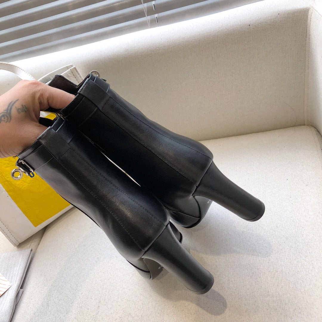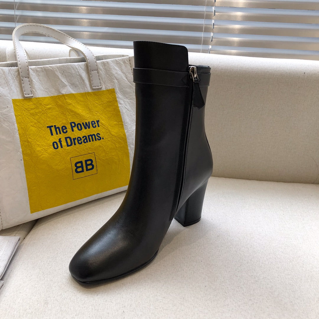 HM Classic Kelly High-Heeled Boots Black Cowhide 546214