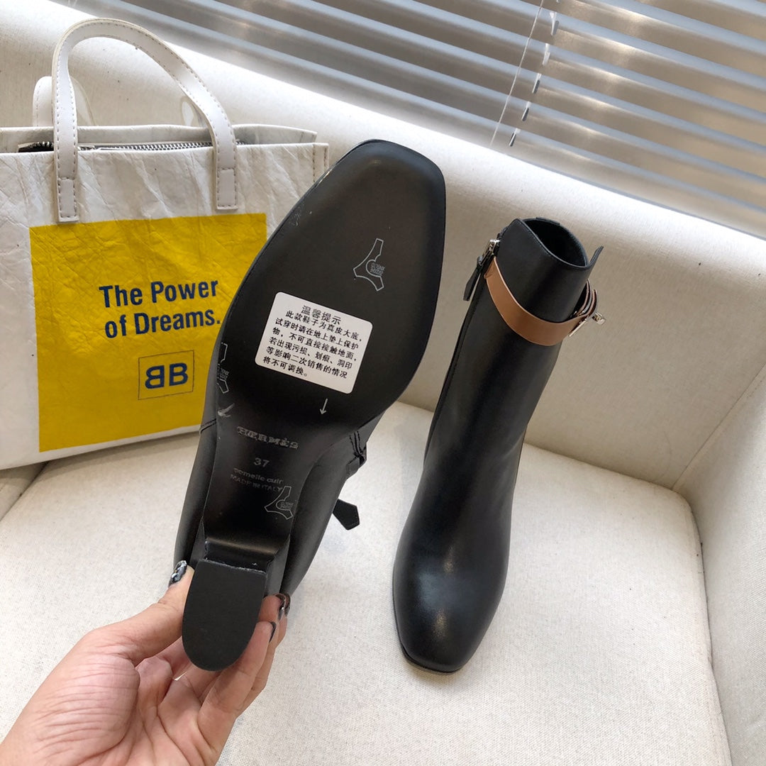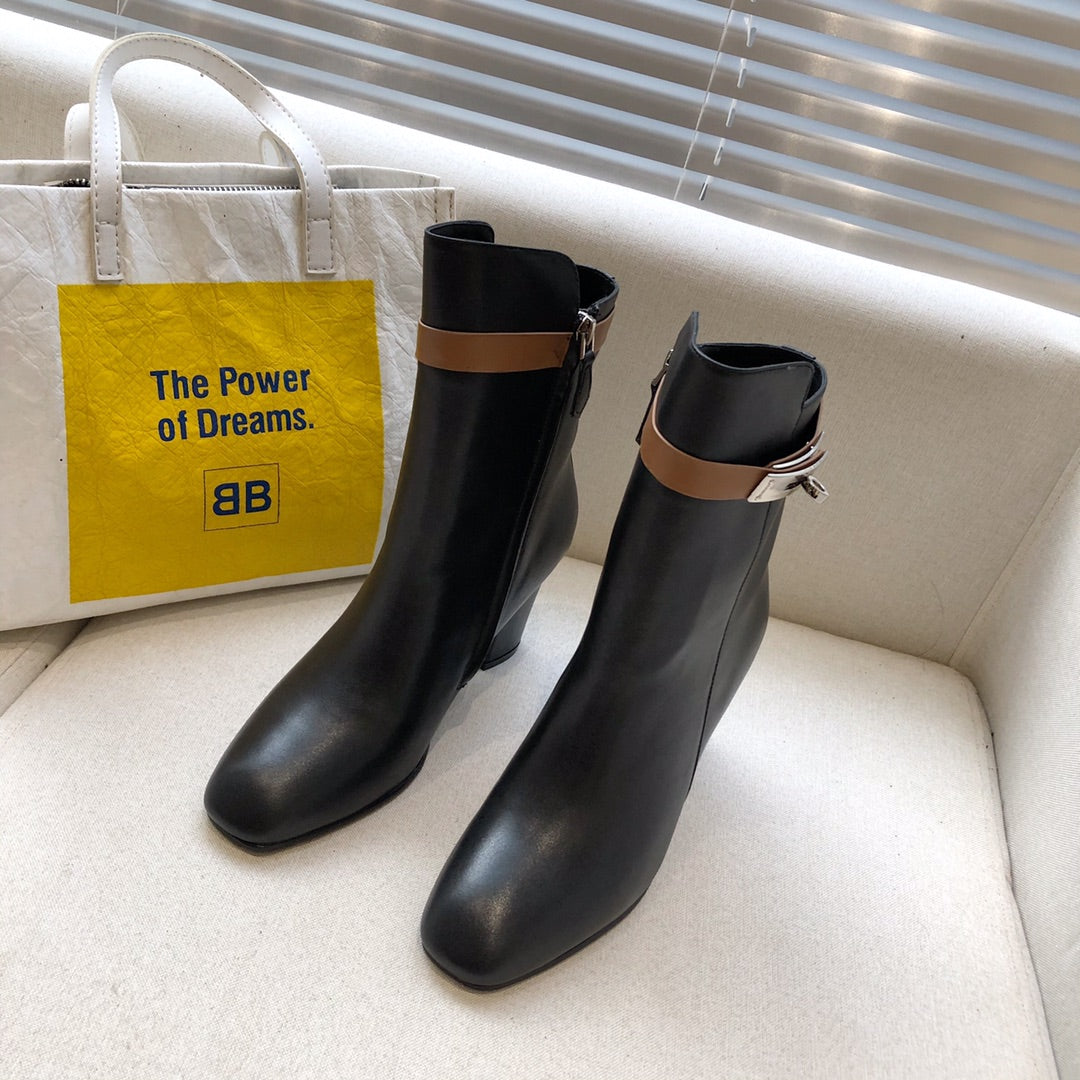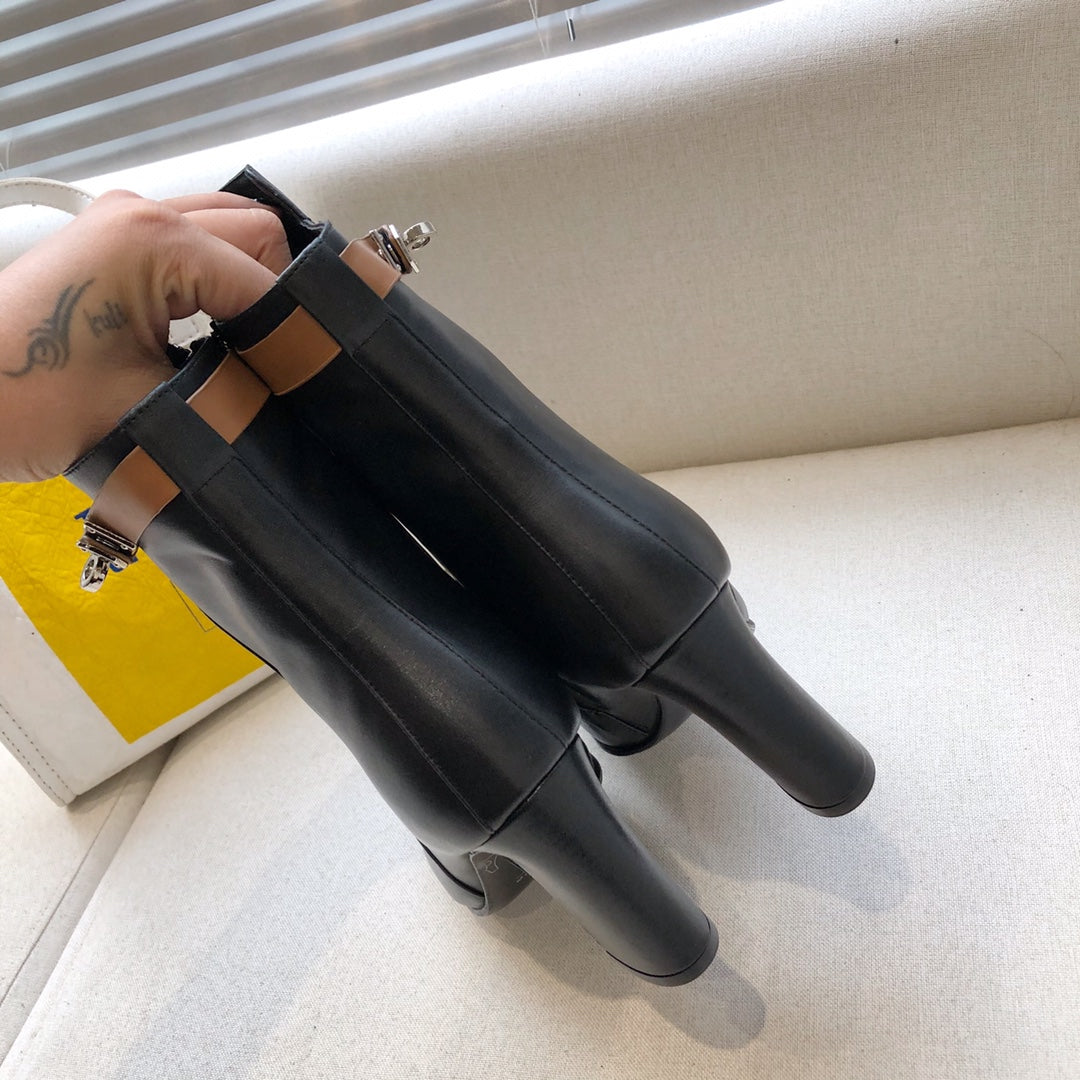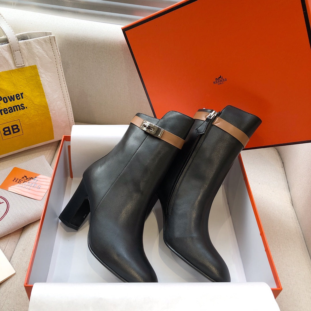 HM Classic Kelly High-Heeled Boots Brown Black Cowhide 546216