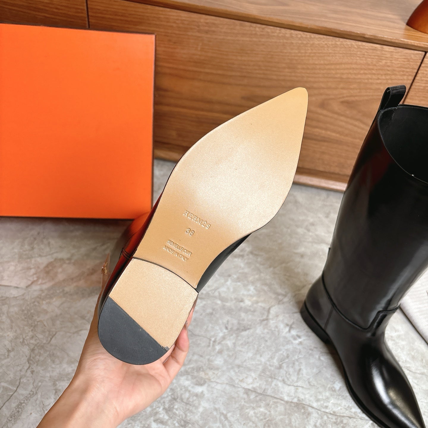HM FW Pointed-Toe Riding Boots Black Patent Leather 541261