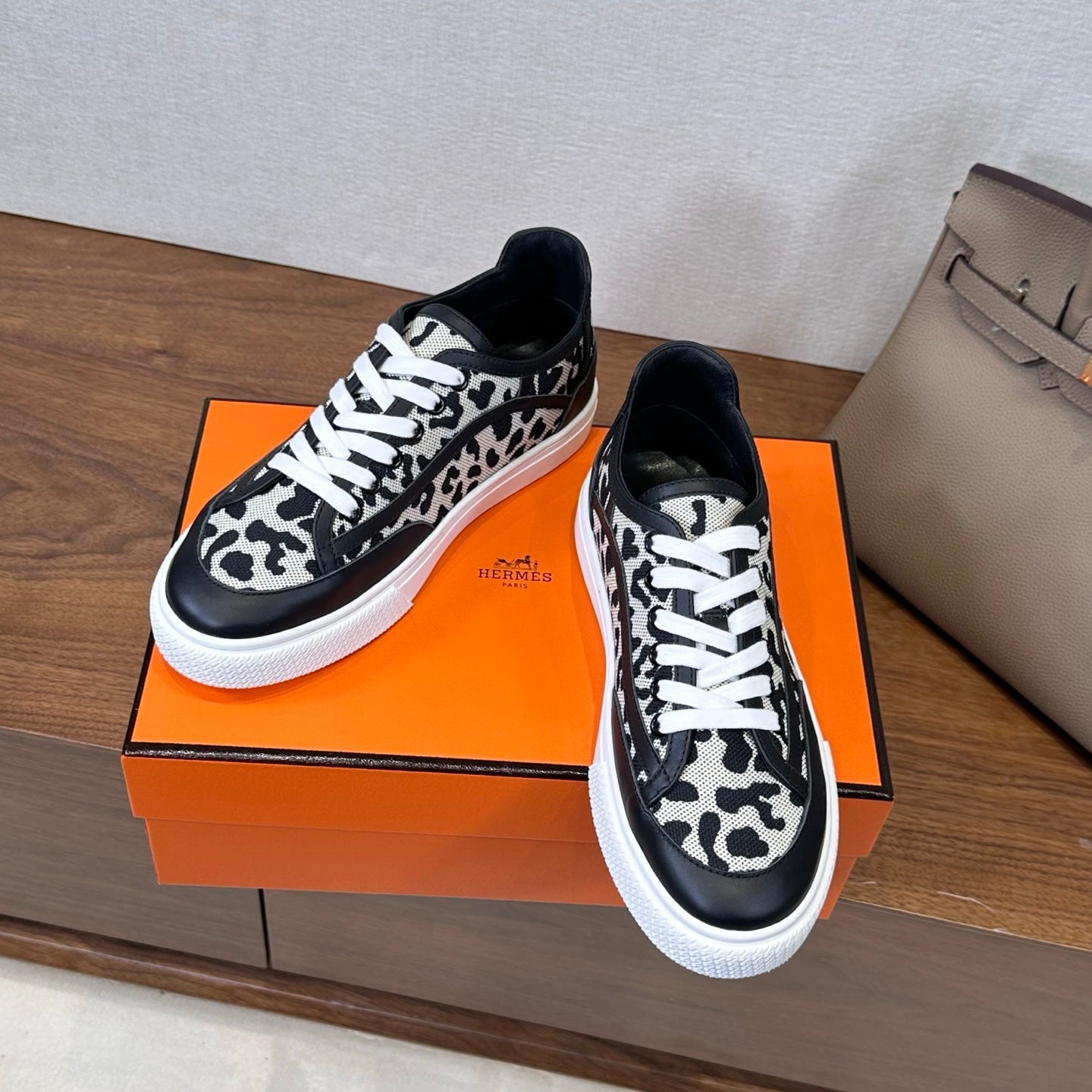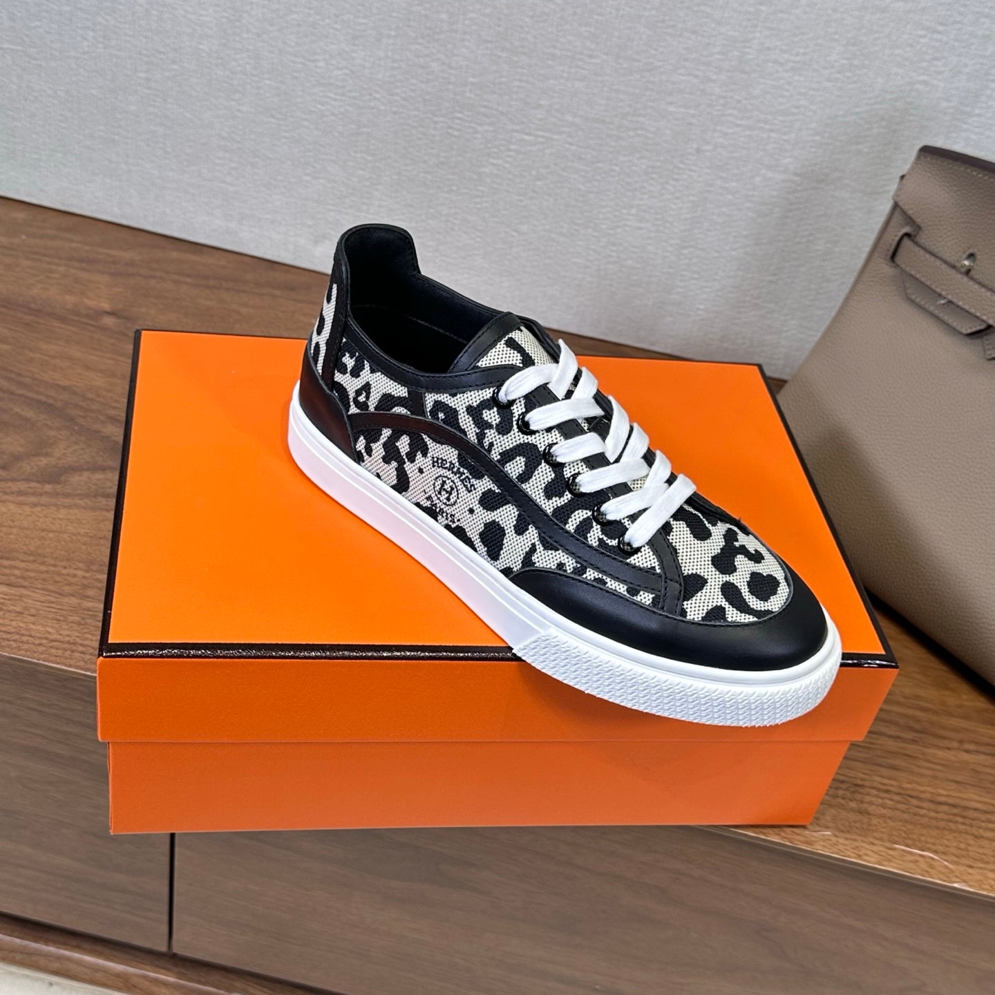 • Material:  Printed leopard canvas and calfskin