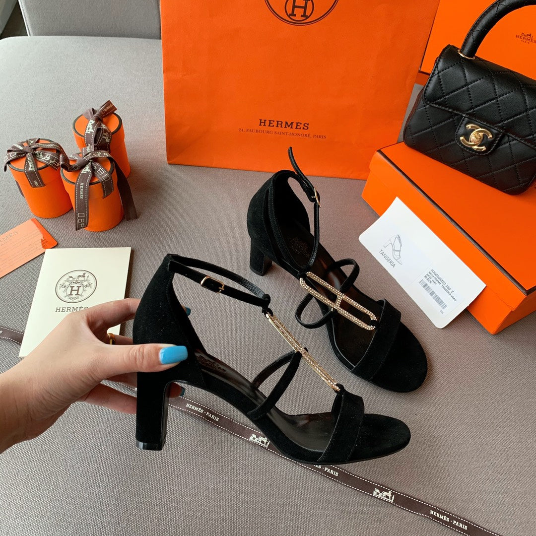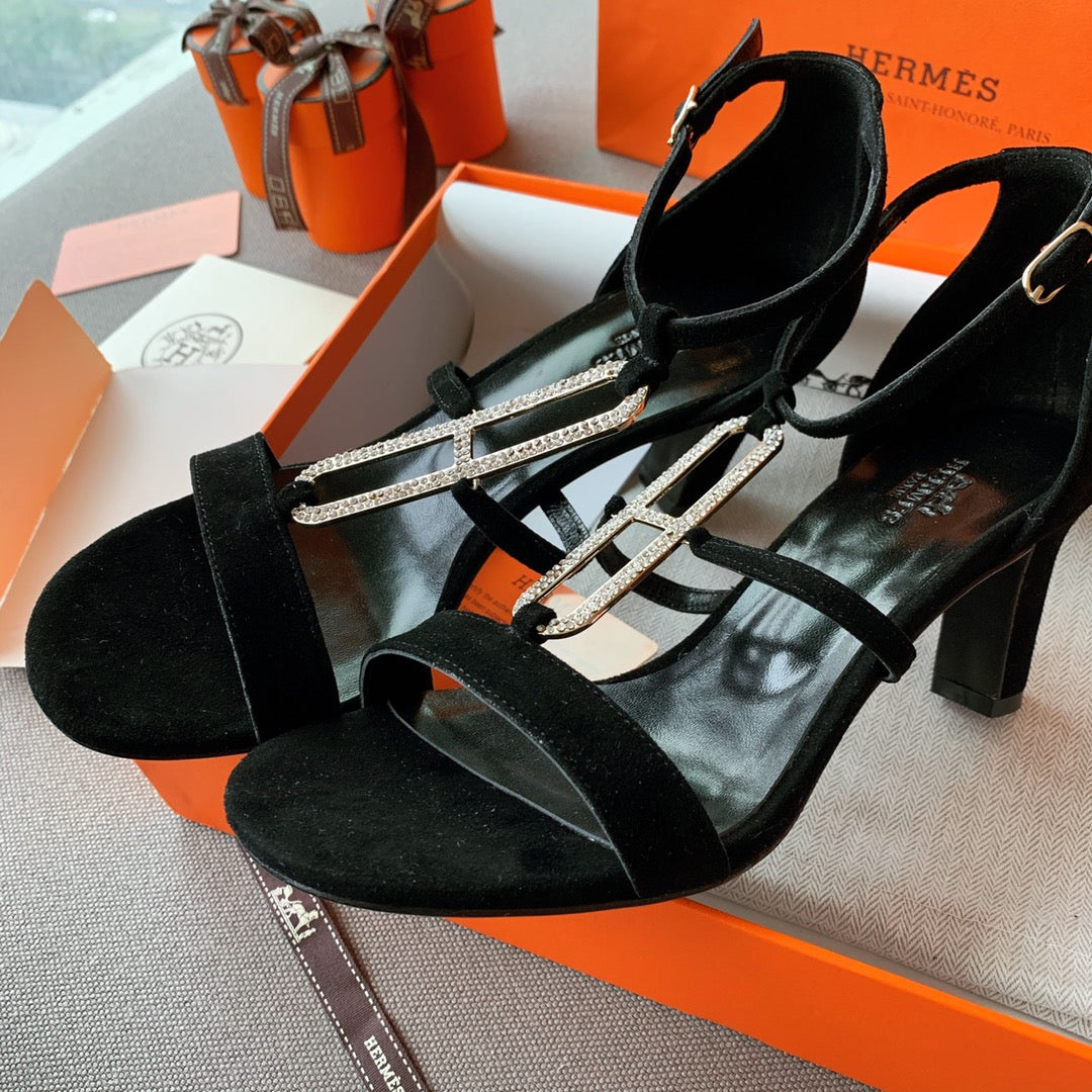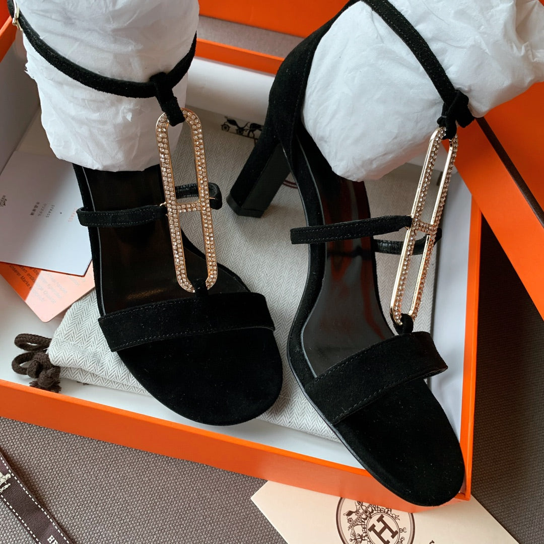 HM Icone Crystal Sandals 60mm Black Suede 546253