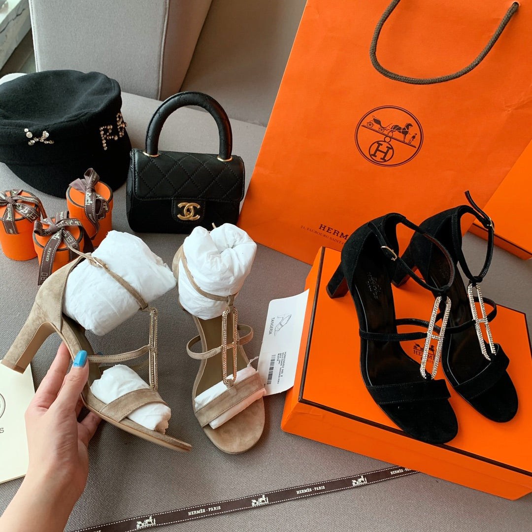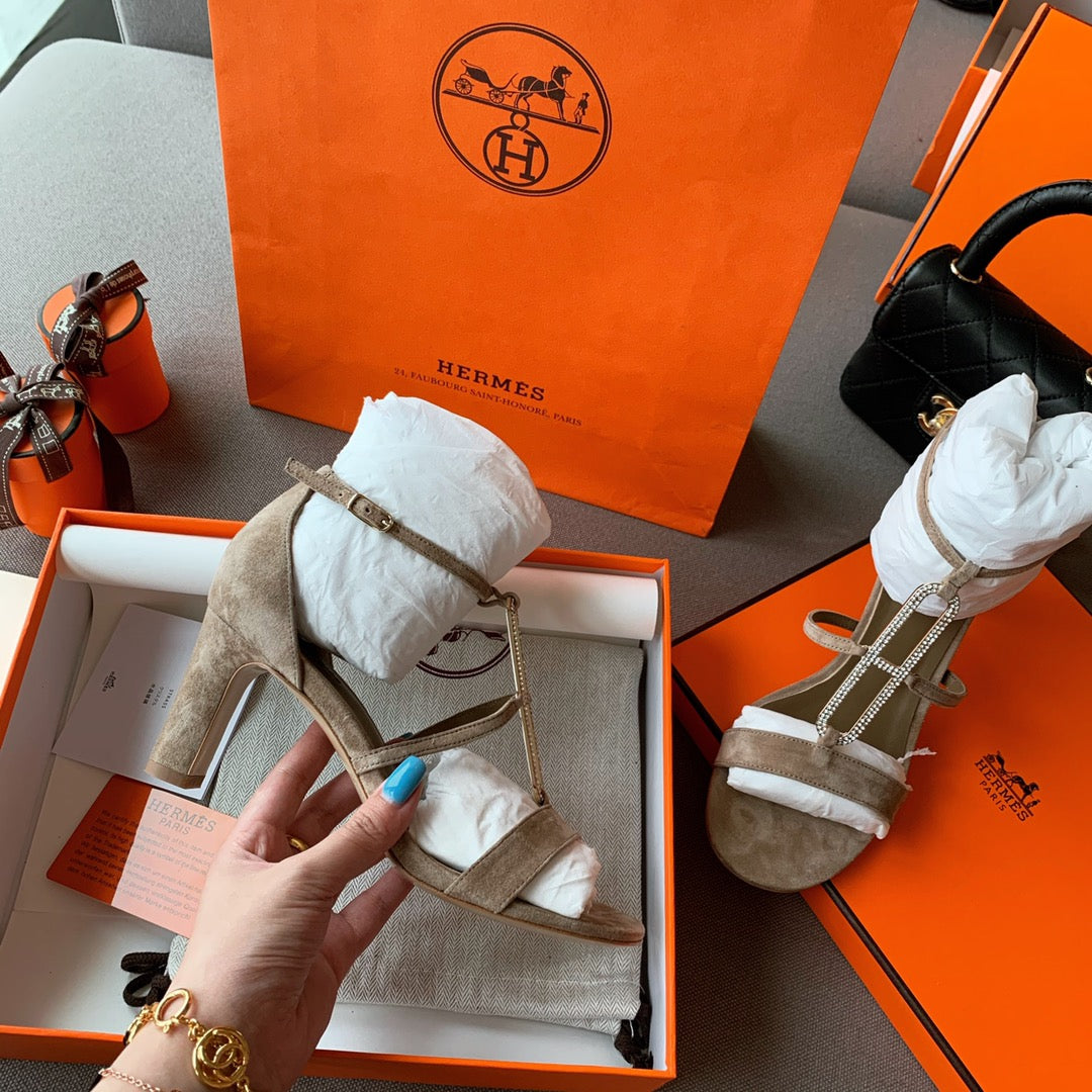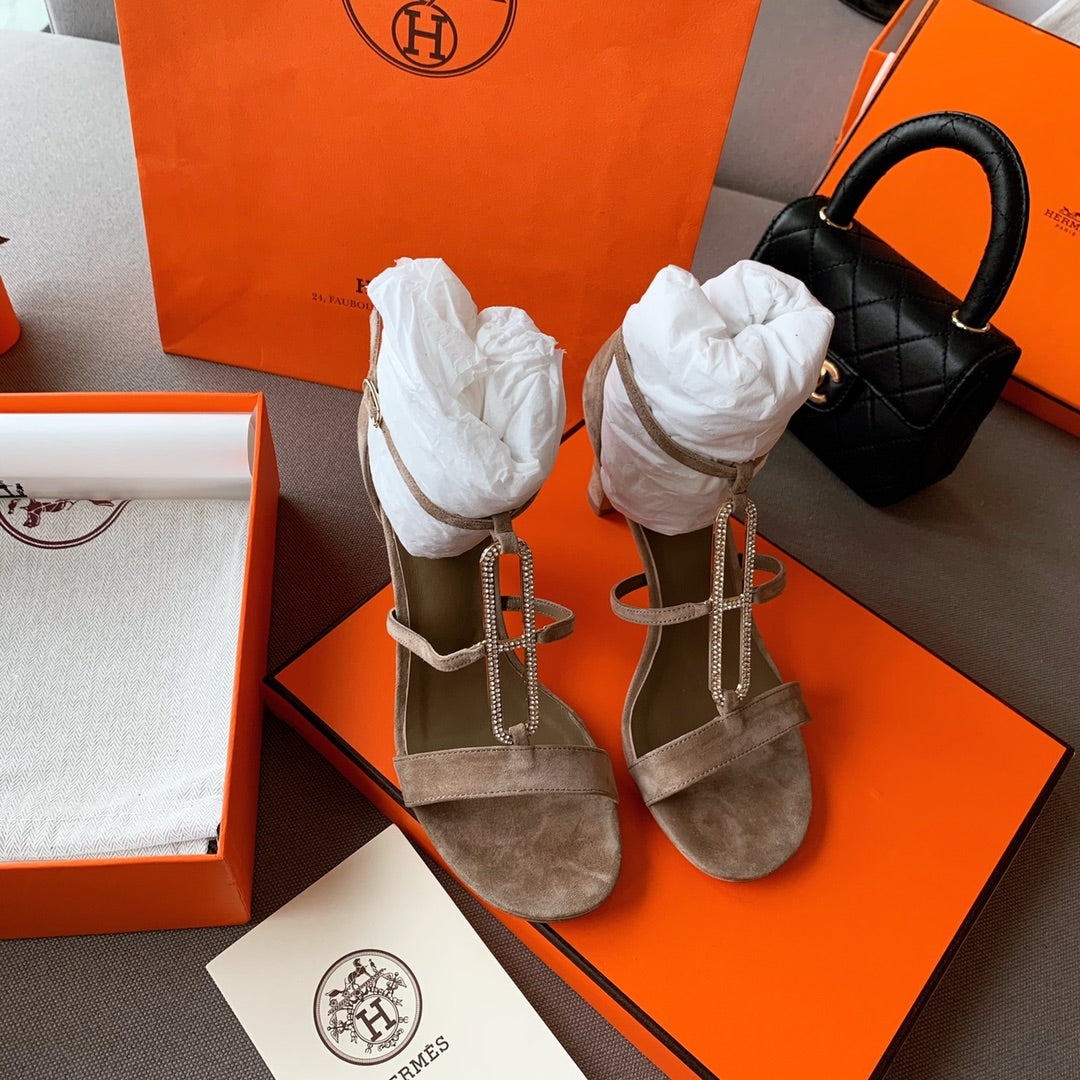 HM Icone Crystal Sandals 60mm Brown Taupe Suede 546252