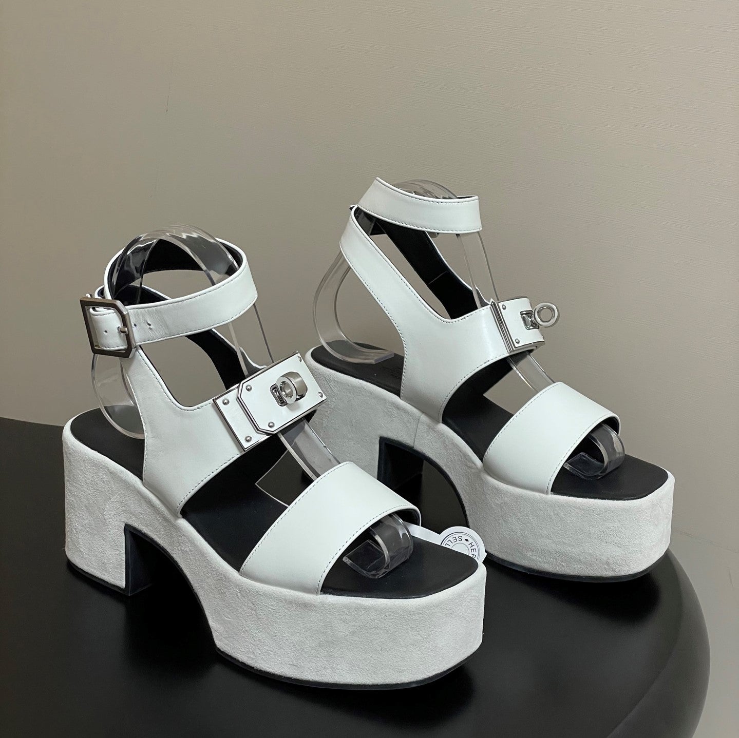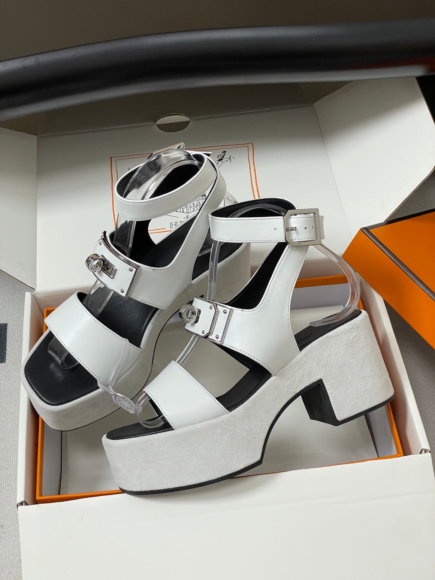 HM Lola 35 Heeled Sandals White Goatskin 534766
