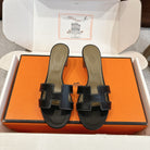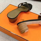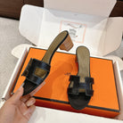 HM Oasis Sandals Black Mix Khaki Brown Chisel Pattern Cowhide 544092