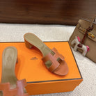 HM Oasis Sandals Brown Mix Khaki Brown Chisel Pattern Cowhide 544091