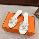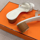 HM Oasis Sandals White Embroidery Pattern Cowhide 544097